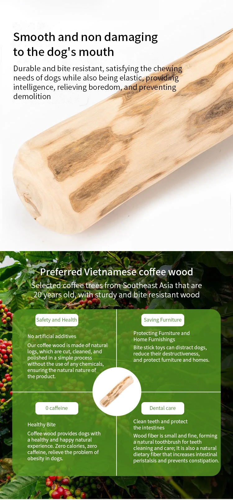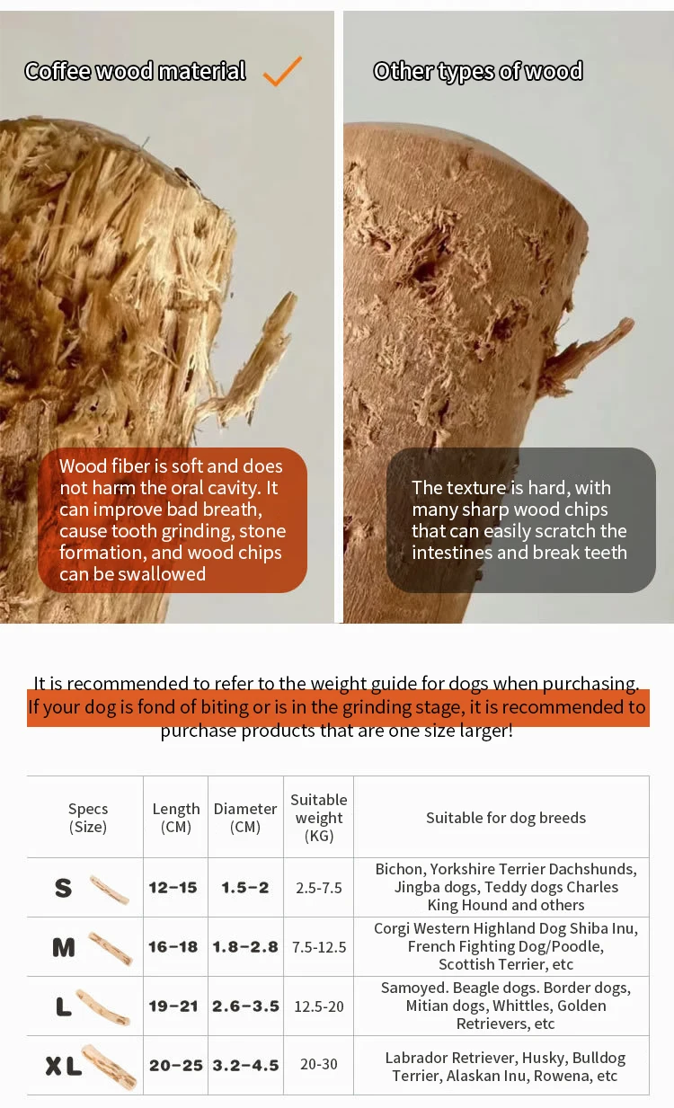 Juguete masticable de madera para perros con café, palo masticable de madera para perros, para aliviar la presión dental, juguetes para mascotas