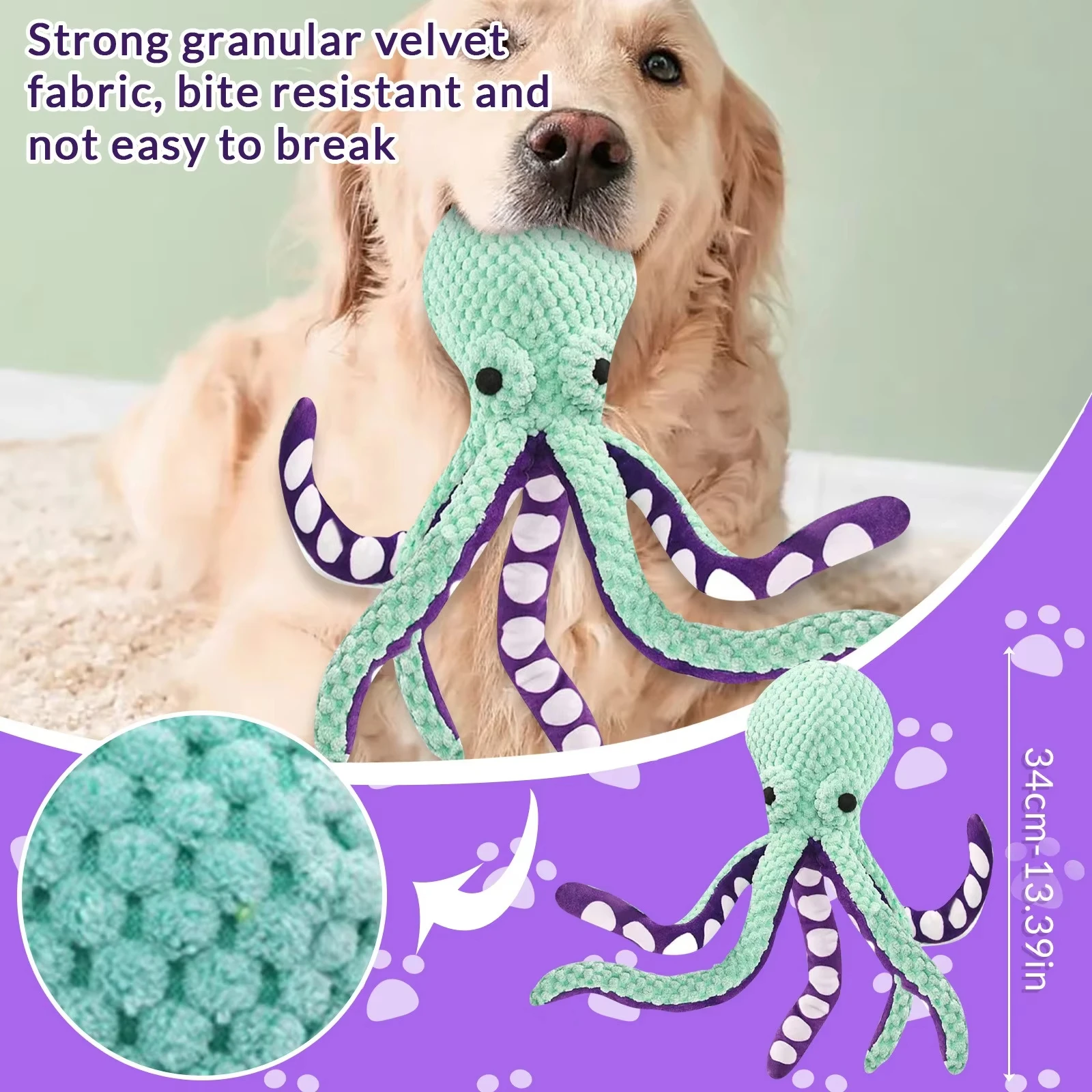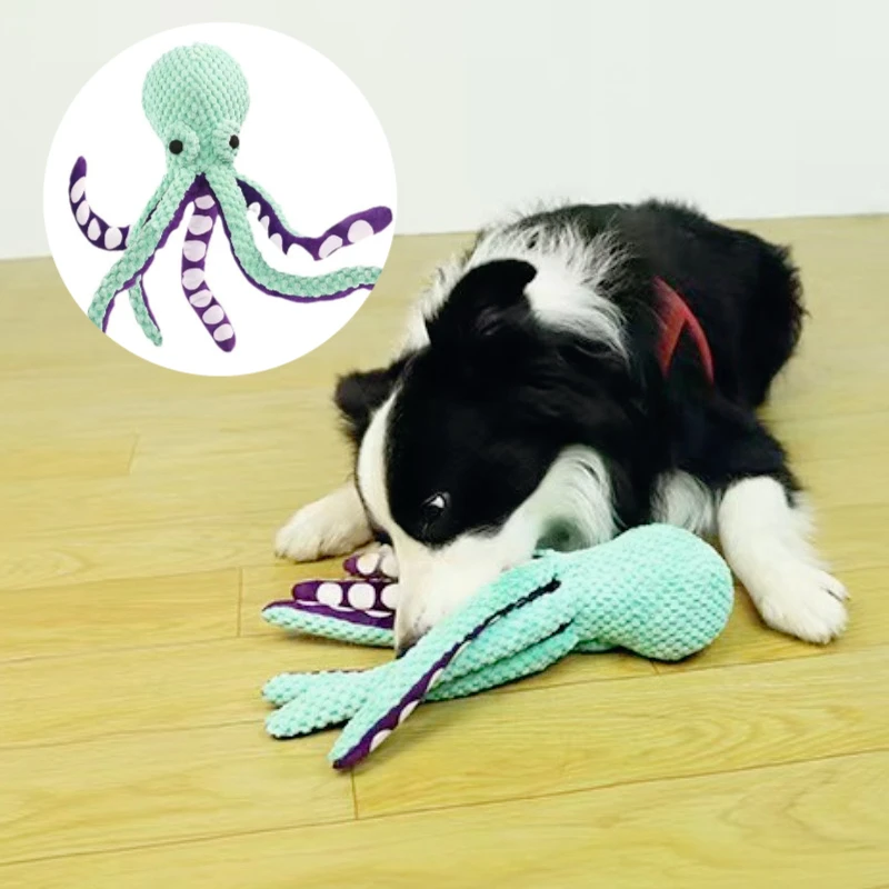 Juguete masticable de peluche de pulpo perfumado, juguete interactivo para cachorros con brazos de cuerda, chirriador en el interior para entrenamiento divertido y alivio de la ansiedad