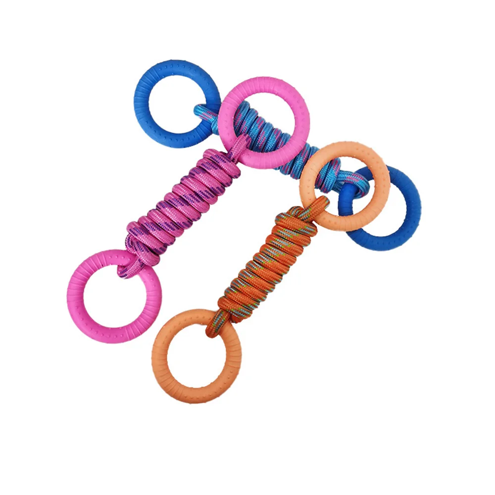Juguete masticable para perros: círculo de cuerda de nailon, juguete de dentición duradero para cachorros y perros, limpieza de dientes y control del sarro,