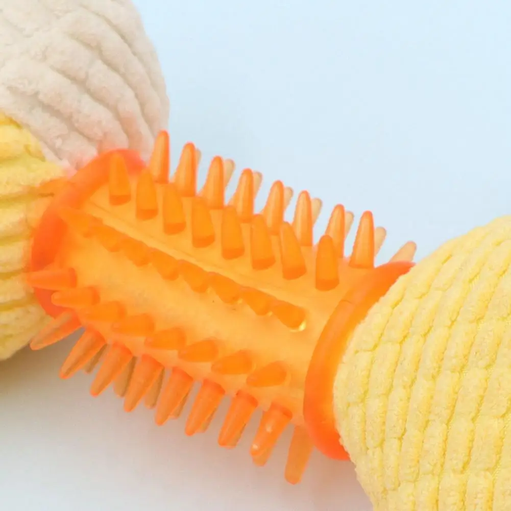 El juguete está lleno de un material suave y flexible que es cómodo de tocar y presenta una textura peluda que a su mascota le encantará. No solo ayuda a moler y limpiar los dientes, sino que también incluye un diseño de sonido incorporado para aliviar el aburrimiento de su mascota.