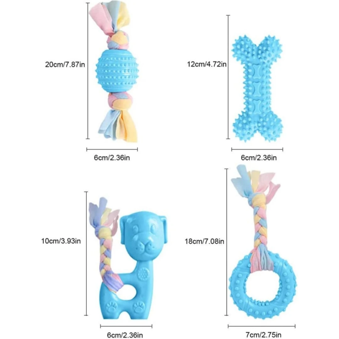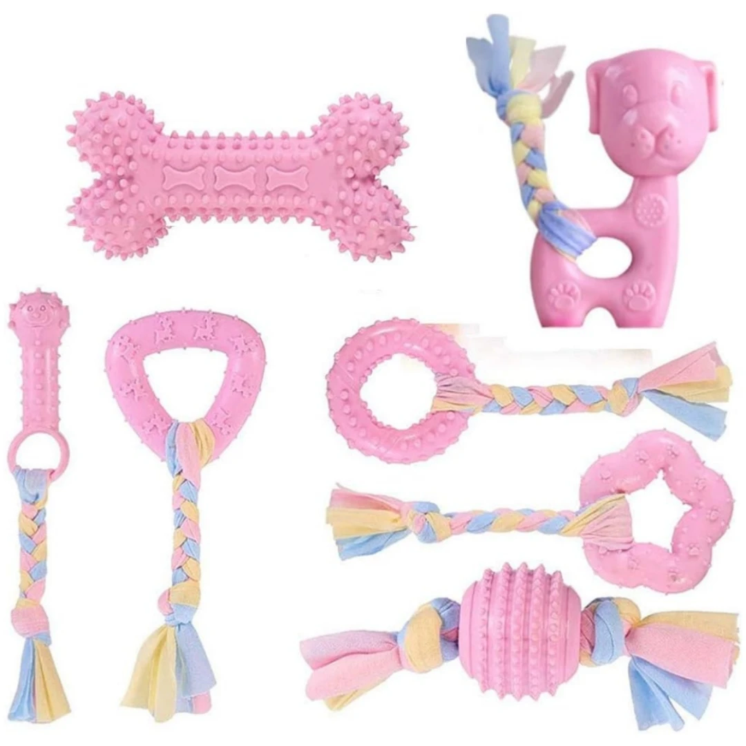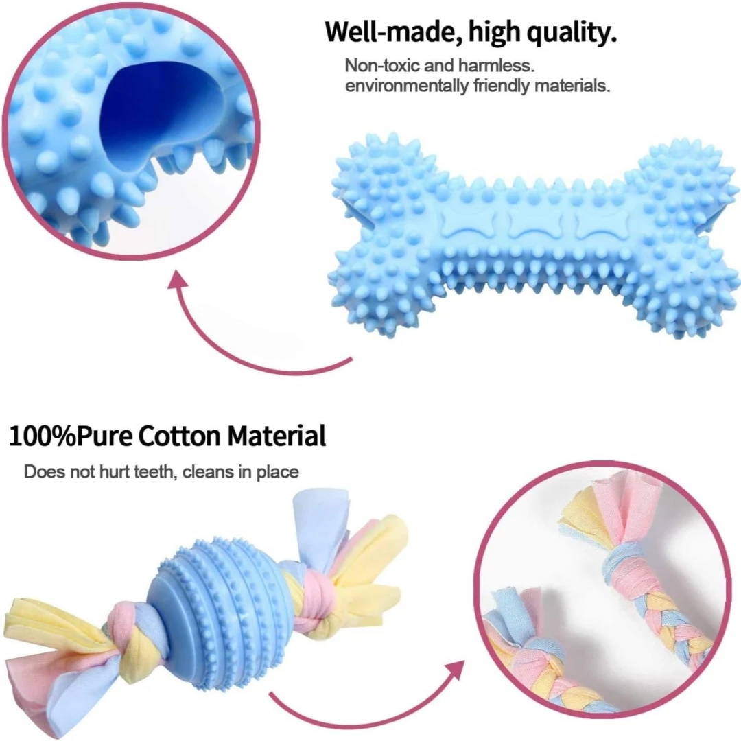 Juguete masticable para perros, juego de juguetes molares masticables para cachorros de 7 piezas con bola y cuerda colorida, juguete interactivo para mascotas adecuado para perros pequeños y medianos