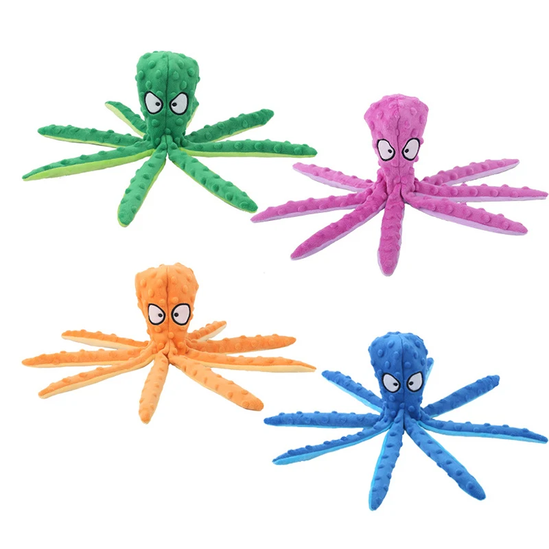 Juguete masticable resistente a las mordeduras para perros pequeños, peluche de pulpo, conejo, vaca, ratón, juguetes chirriantes para cachorros, suministros para Mascotas
