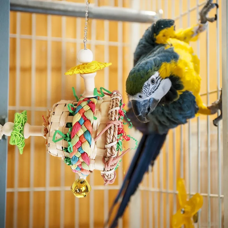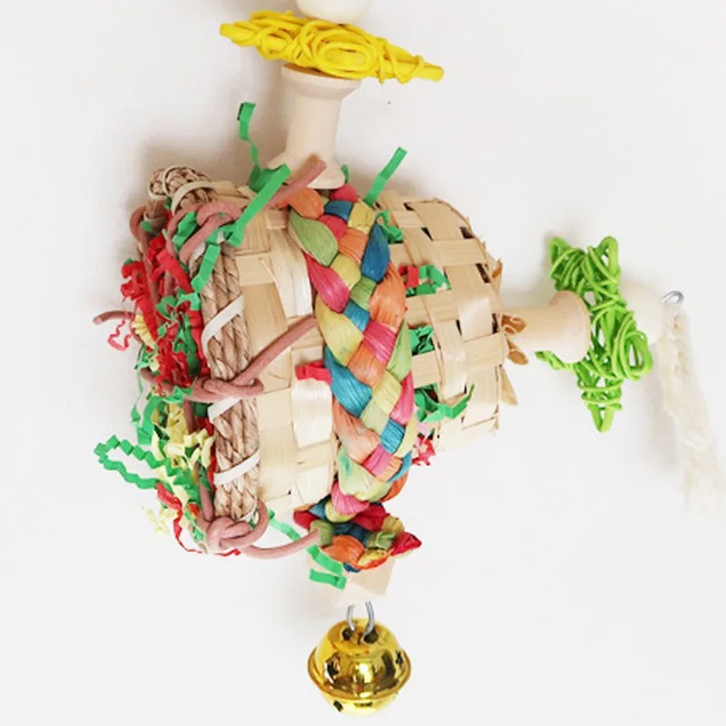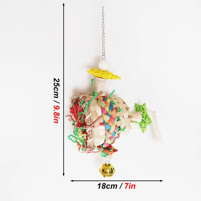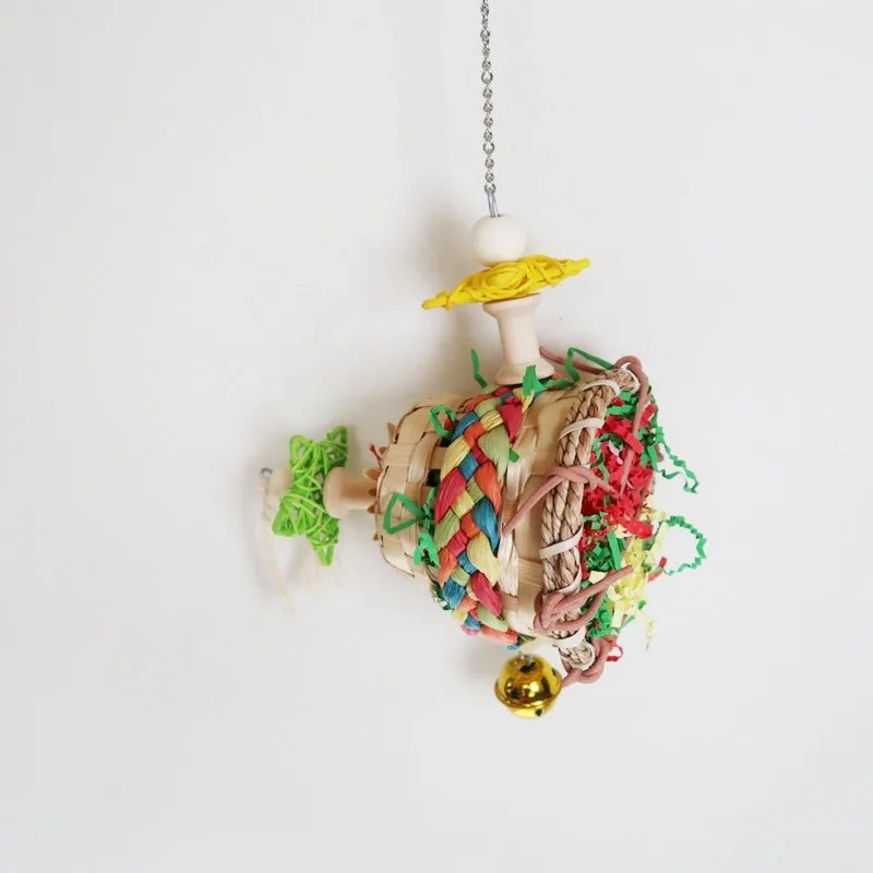 Juguete para masticar colgante de ratán de madera, Animal PEQUEÑO, pájaro, loros, juguete para masticar, papel triturado de ratán para masticar dientes, juguetes molares, 1 ud.