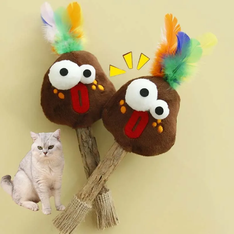 Juguete para masticar para gatos, hierba gatera interactiva, pluma de pavo simulada, juguete para gatitos chirriantes, resistente a mordeduras, limpieza de dientes, juguete para gatos