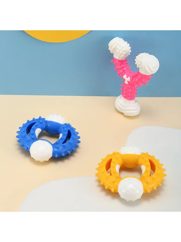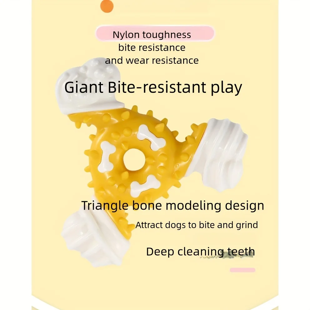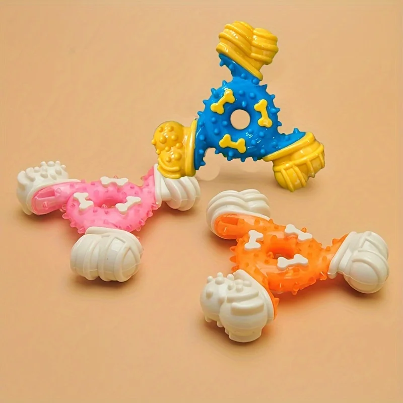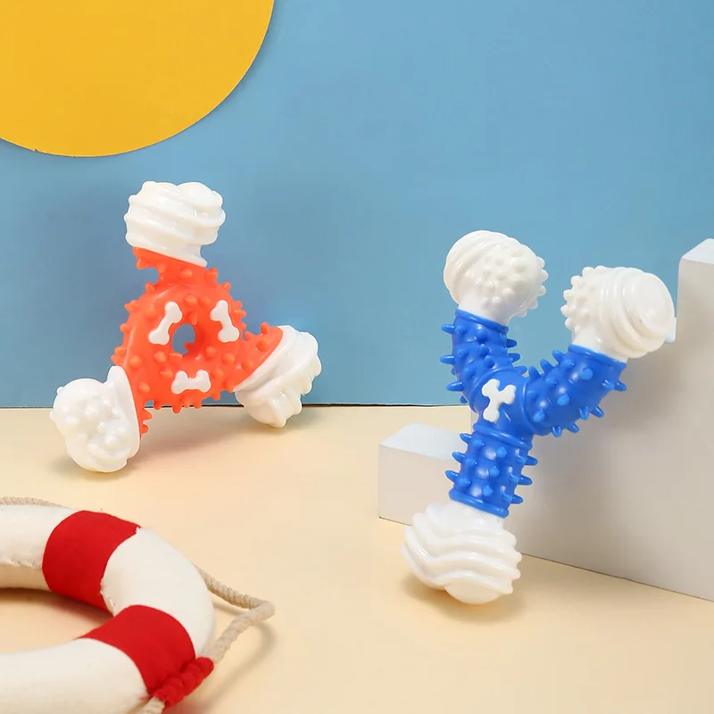 Juguete para masticar hueso triangular duradero, palo de limpieza de goma termoplástica resistente a mordeduras para juegos interactivos de perros y salud Dental