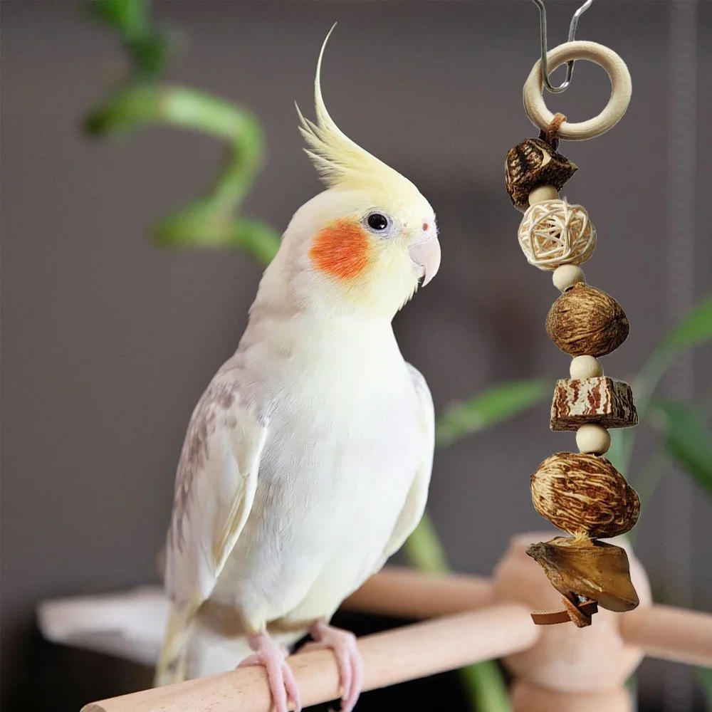 Juguete para masticar loros de Color aleatorio, cuentas de ratán de madera, juguete colgante de molienda para pájaros, loros, juguetes para morder, accesorios para jaulas de pájaros, 1 ud.