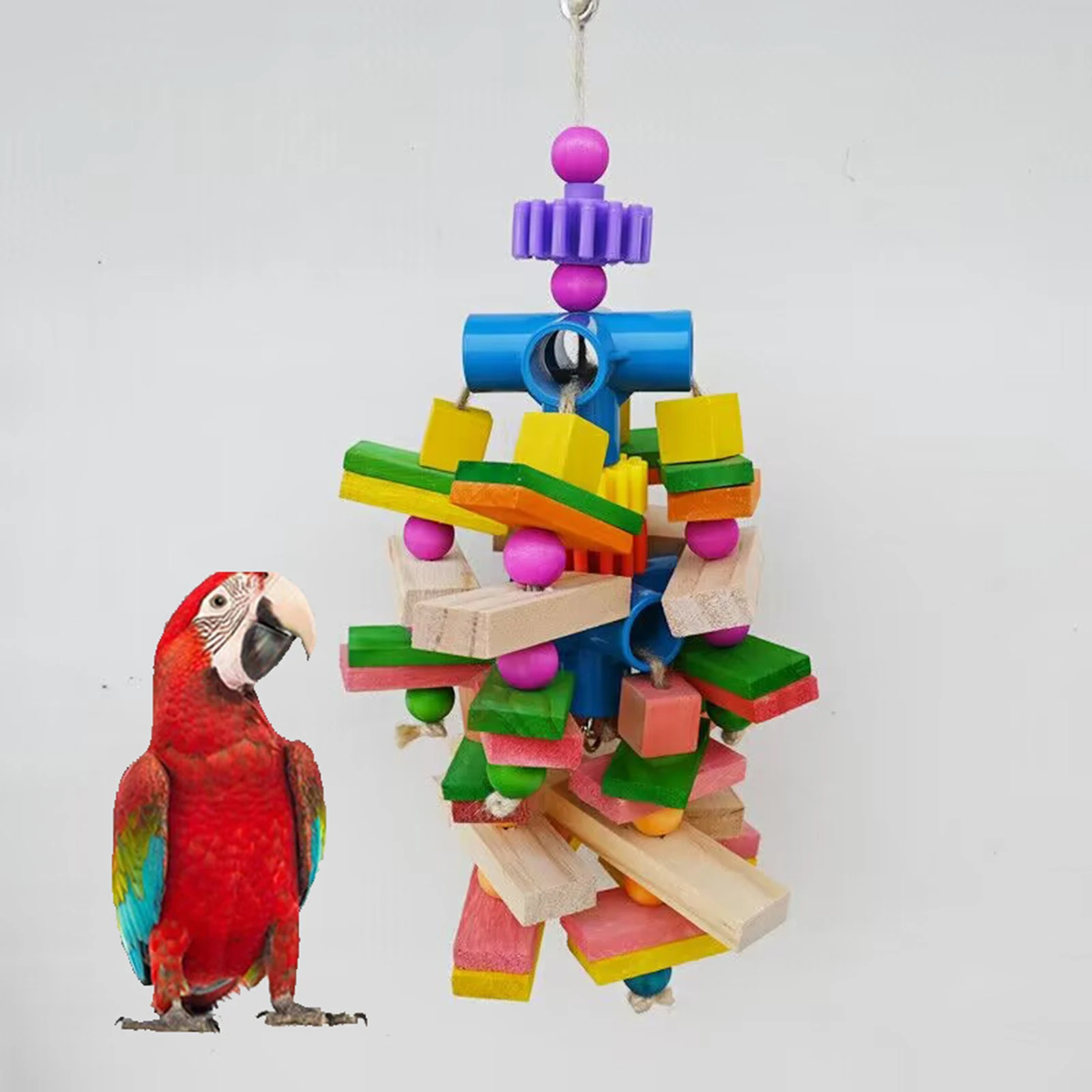 【Material】El juguete para masticar loros está hecho de material de madera, que es resistente y resistente, lo que lo hace conveniente para que los loros lo agarren y mastiquen.
