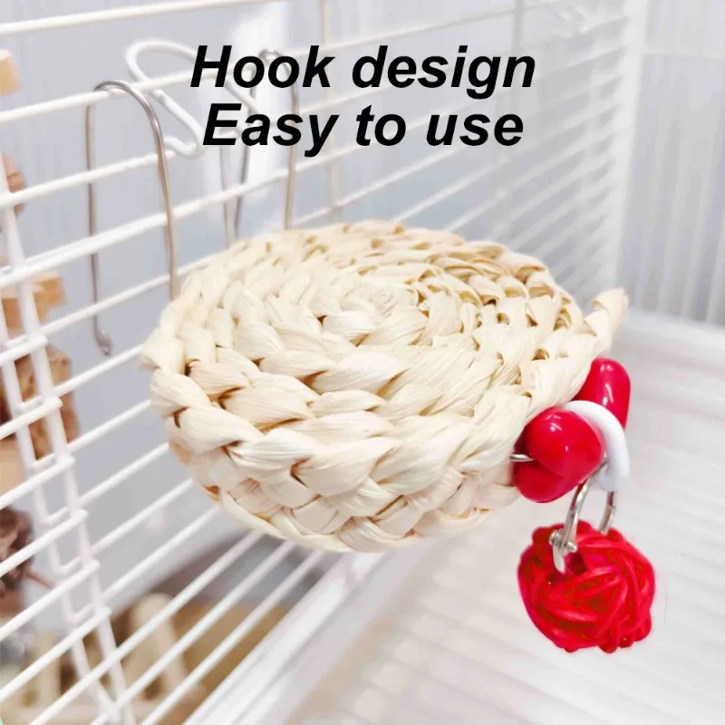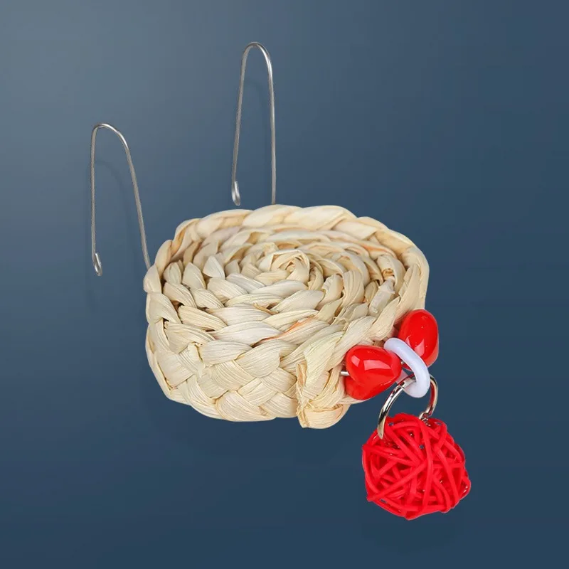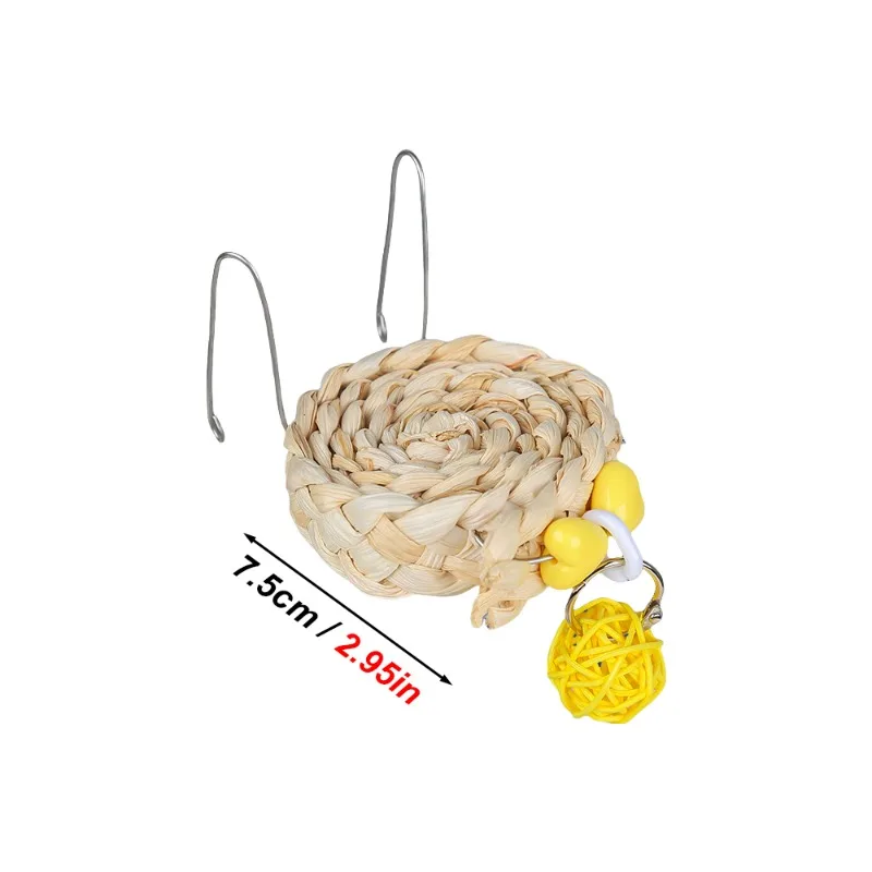 Juguete para masticar loros de ratán con campana, se puede colgar, rechinar los dientes, morder, juguete para mascotas, accesorios para entrenamiento de loros, 1 ud.