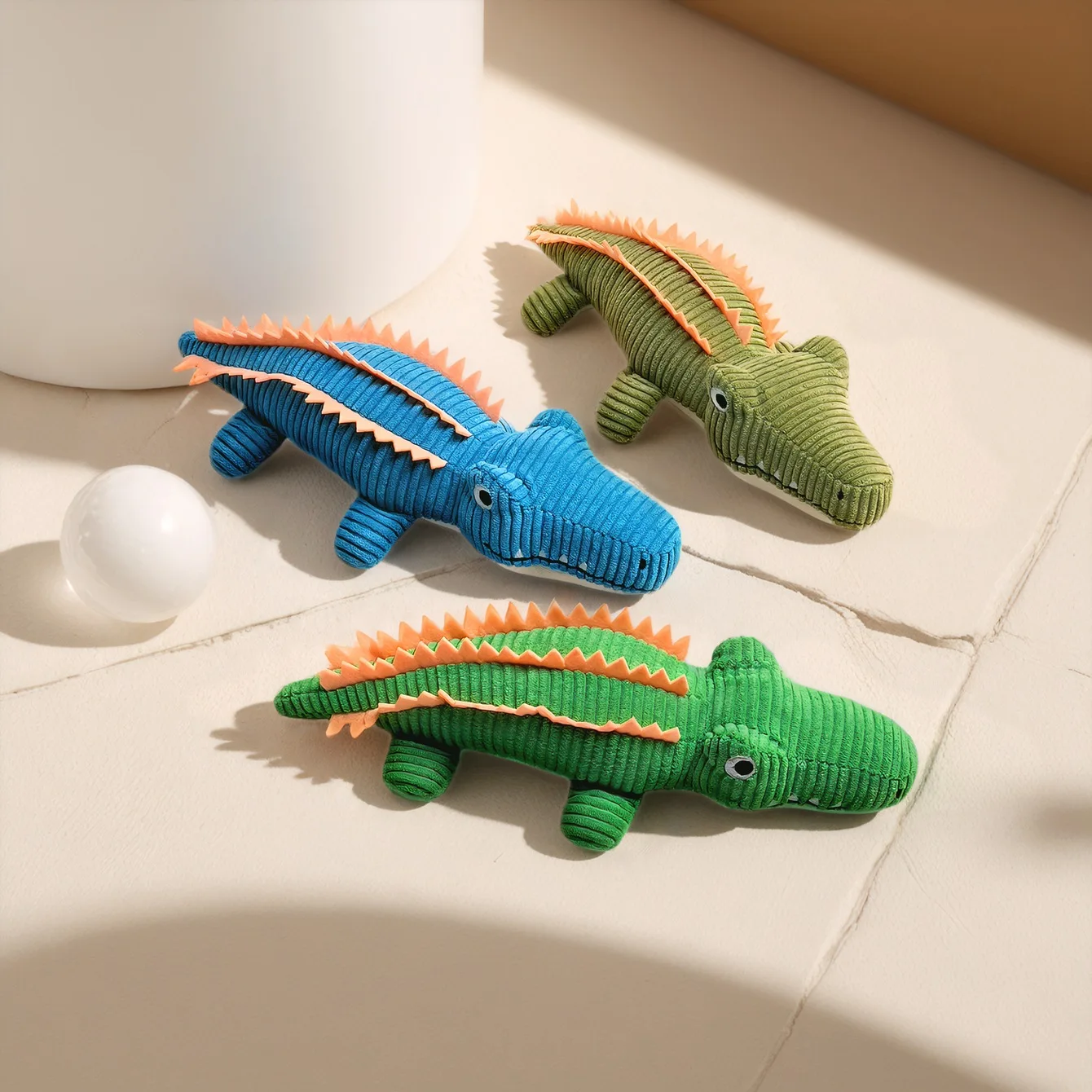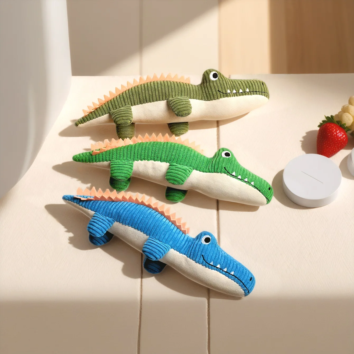 Juguete para masticar para perros, juguete chirriante de felpa de cocodrilo de dibujos animados, juguete duradero para limpiar los dientes para cachorros y perros adultos,
