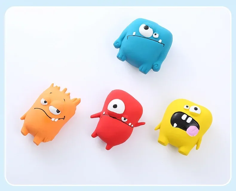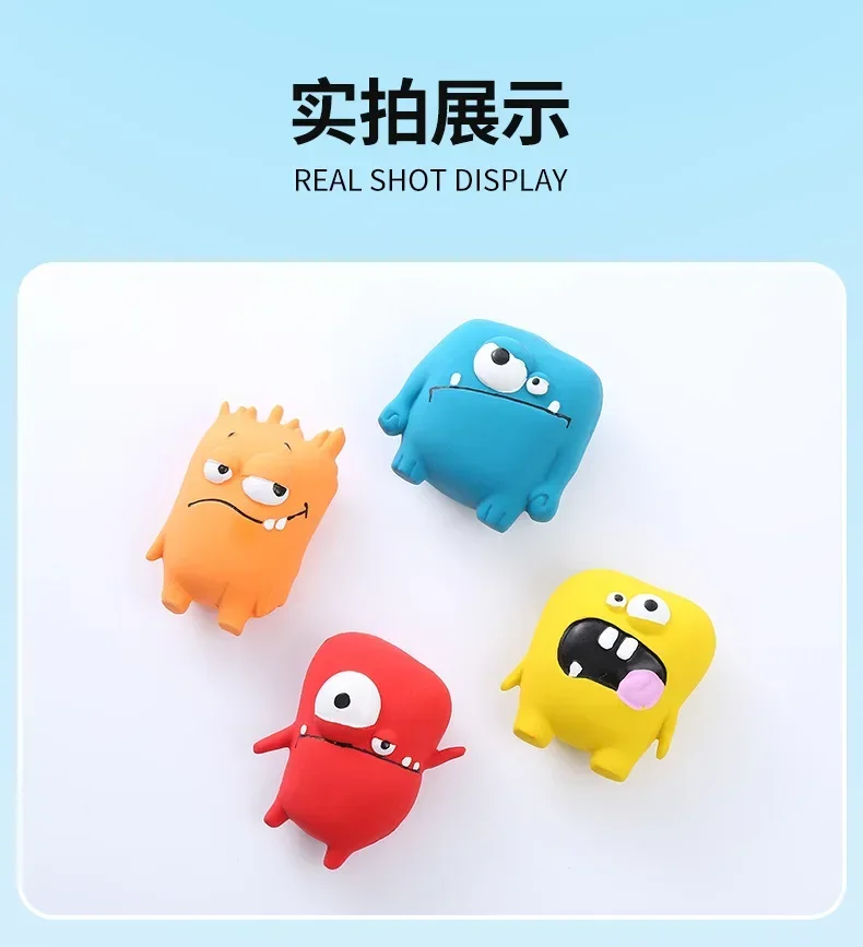 Juguete para masticar para perros, pelota chirriante para mascotas, juguete para el cuidado de los dientes, monstruo de ojo grande de dibujos animados, látex de goma, entrenamiento interactivo para cachorros, suministros para perros