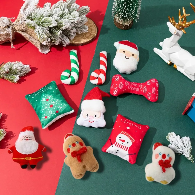 Juguete de Navidad para mascotas, bonito juguete de peluche con sonido de ladridos BB, limpieza de dientes, juguete navideño para mascotas, accesorios para cachorros, juguetes interactivos para perros pequeños