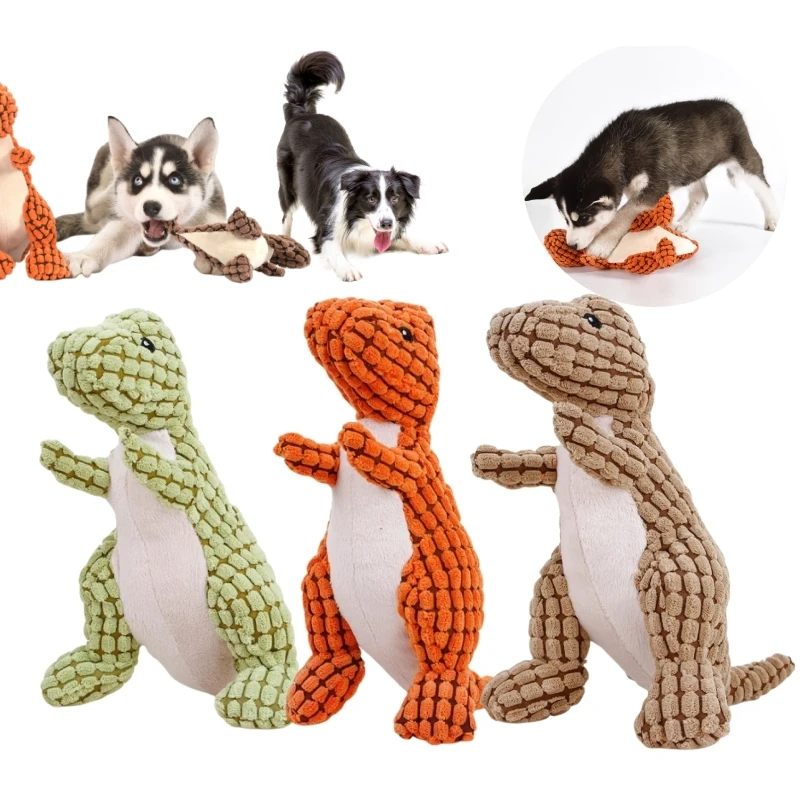 Juguete de peluche de dinosaurio para perros, juguetes chirriantes, bonitos juguetes de pana resistentes a las mordeduras para perros pequeños y grandes, muñecos, juguetes para mascotas, accesorios para perros