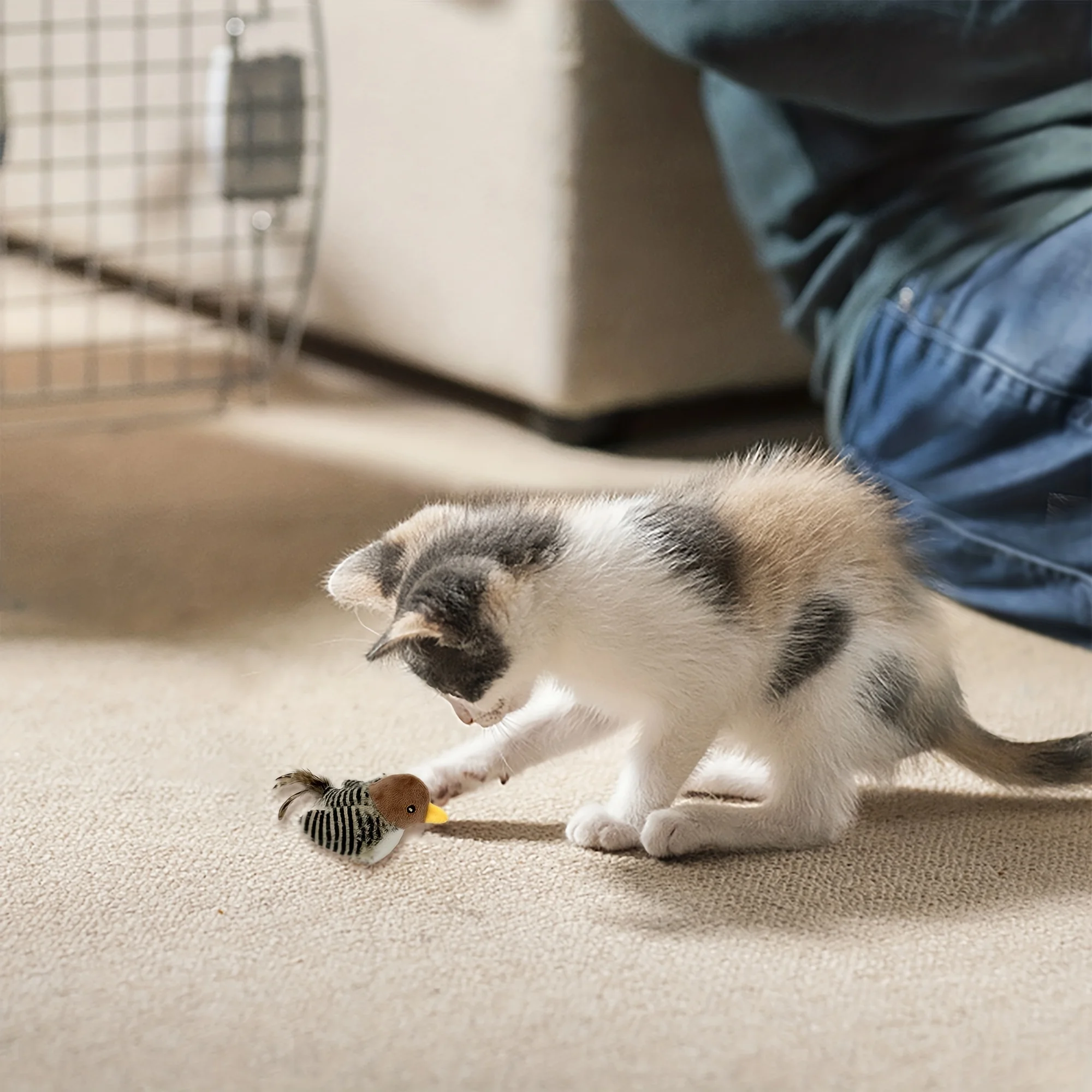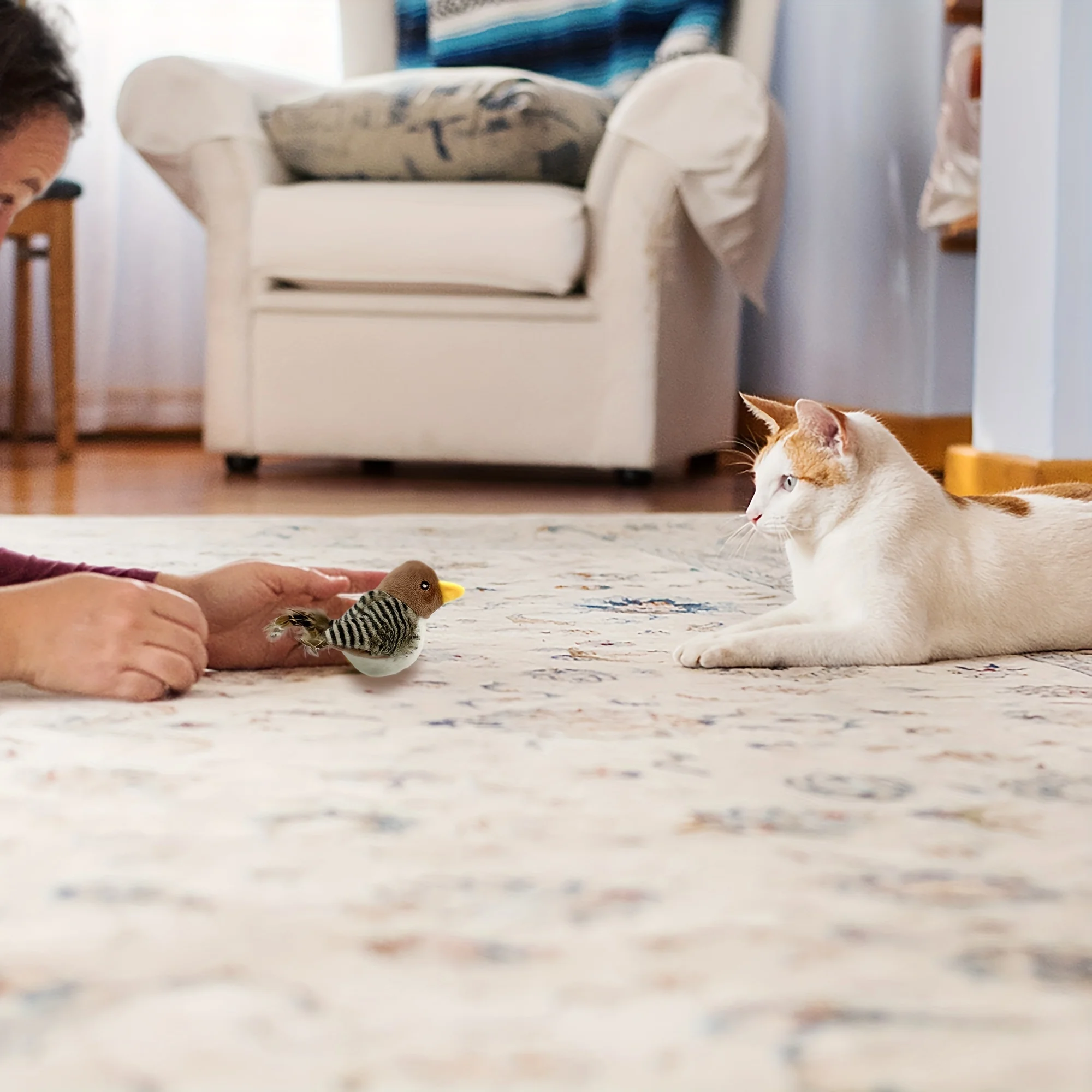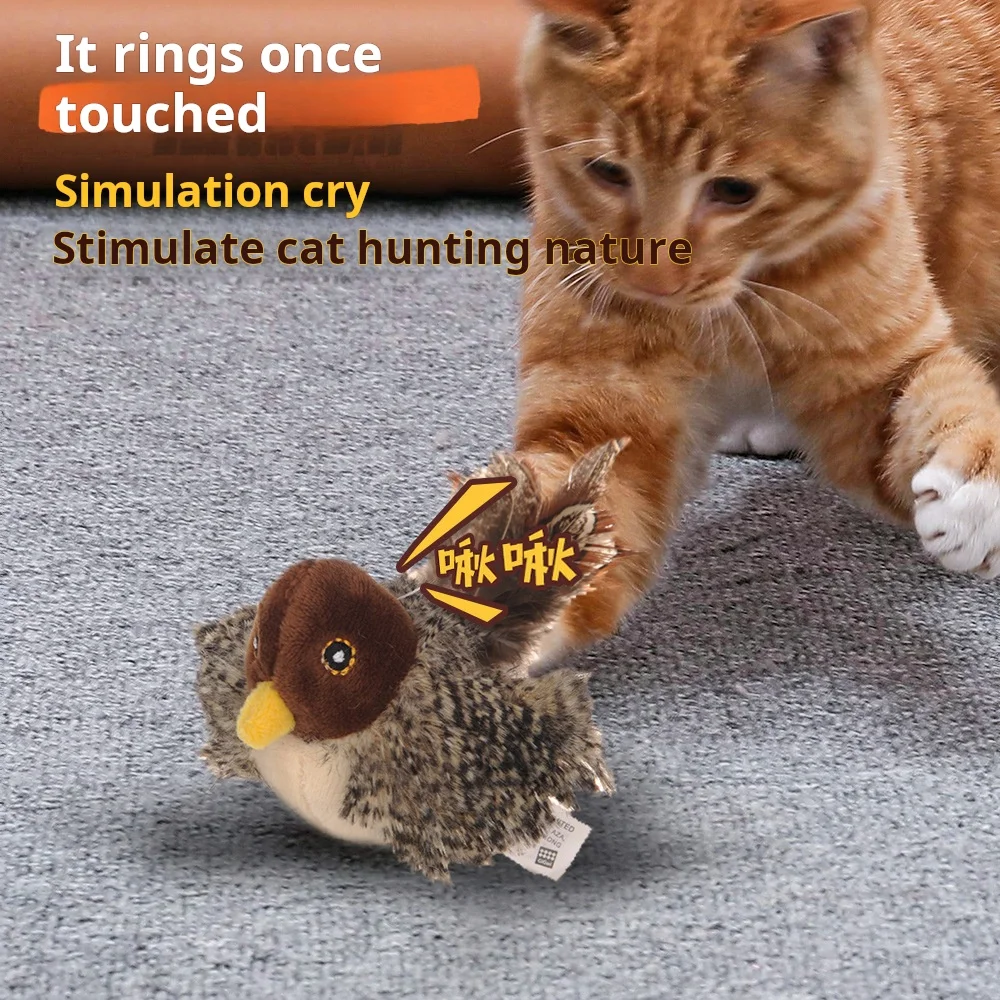 Juguete de peluche con diseño de pájaro gorrión para mascotas, masticable, duradero, juguete chirriante para gatos y perros, suministro interactivo, 1 unidad