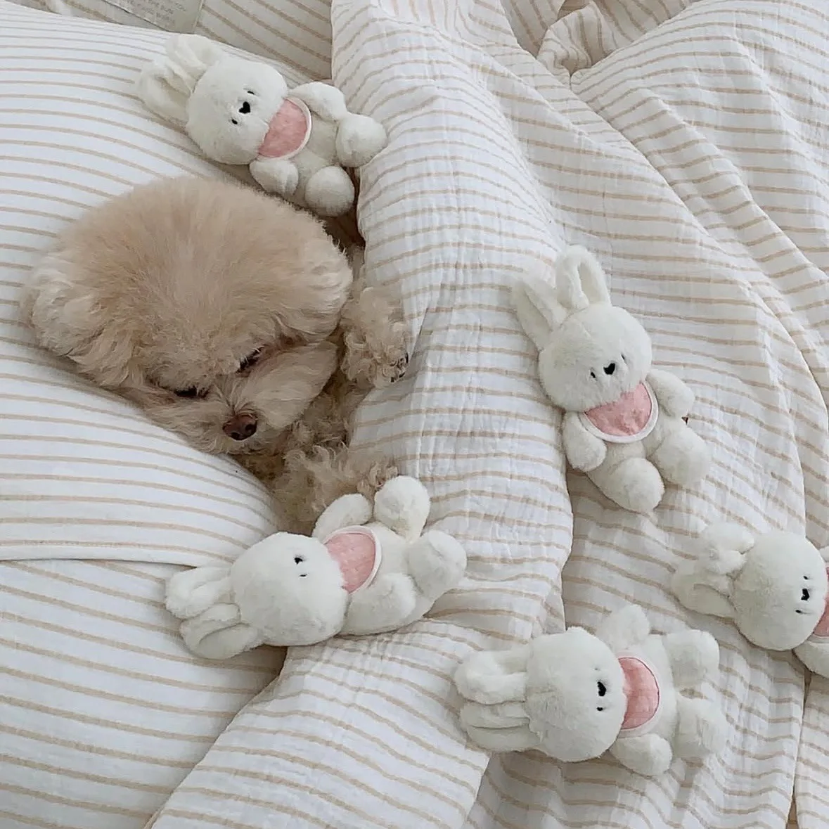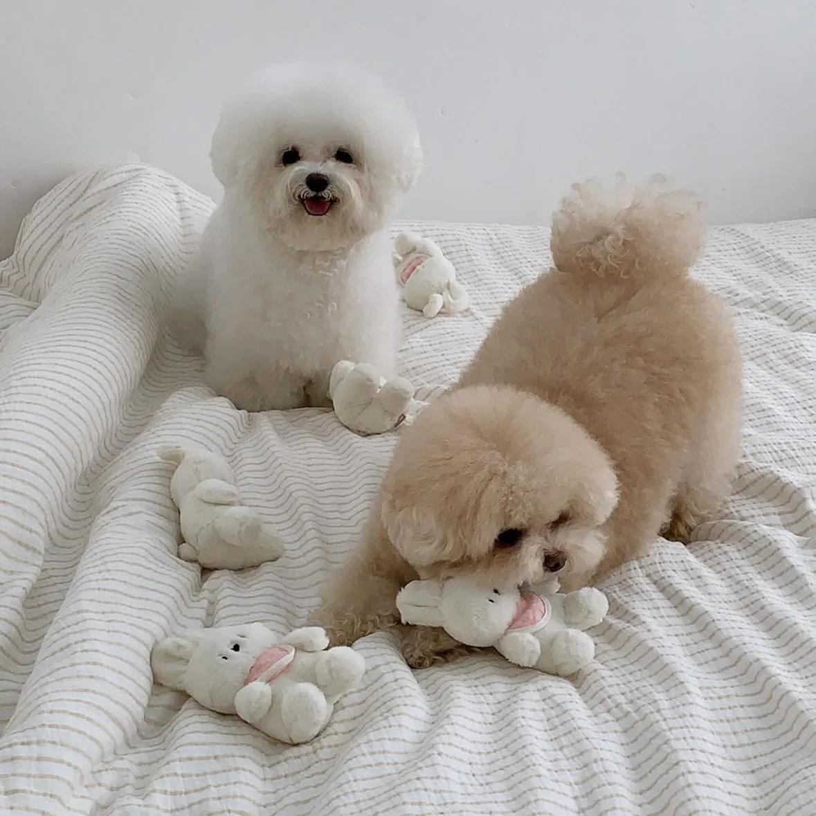 Juguete de peluche para mascotas, conejo que acompaña los sonidos y sonidos para dormir, ropa de cama para gatos, accesorios para perros Pomerianos para cachorros