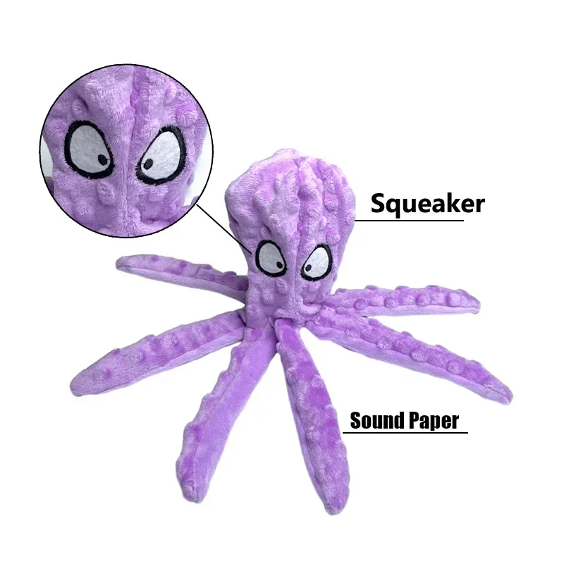 Este juguete estimulante ayuda a liberar la energía de los perros y beneficia a todas las razas. Mantiene a los perros ocupados felices y disuade la masticación destructiva. ¡A tu perro le encantará jugar con este divertido peluche de pulpo!