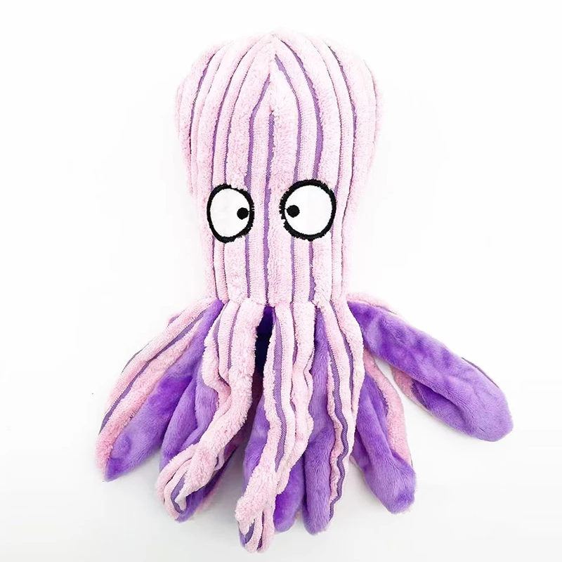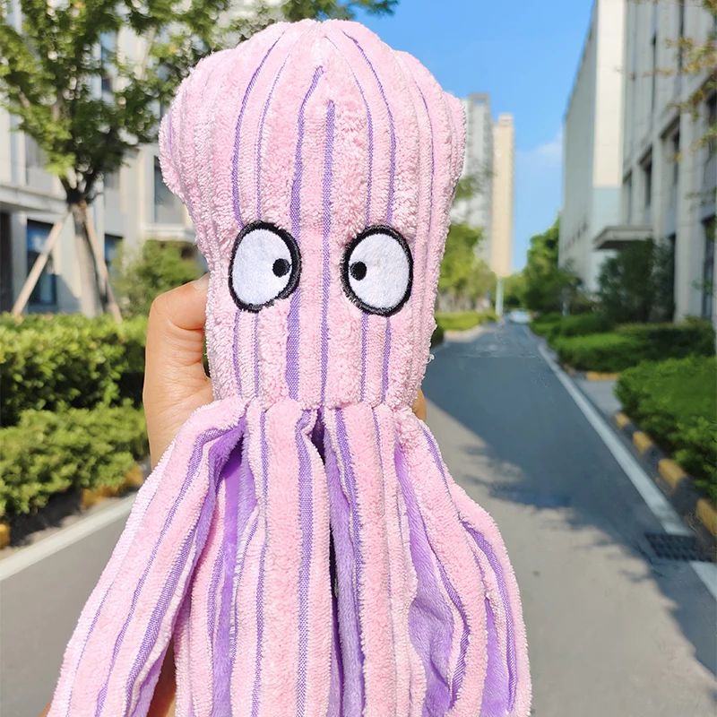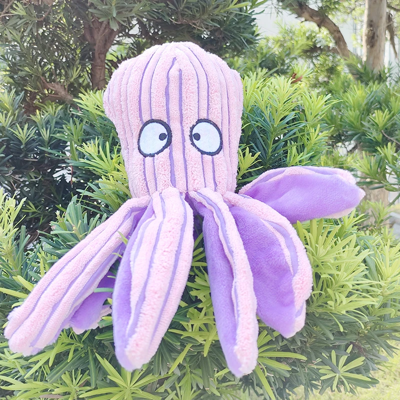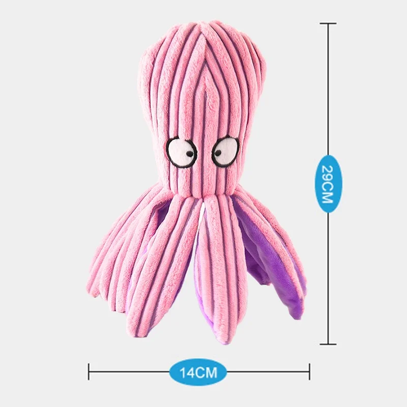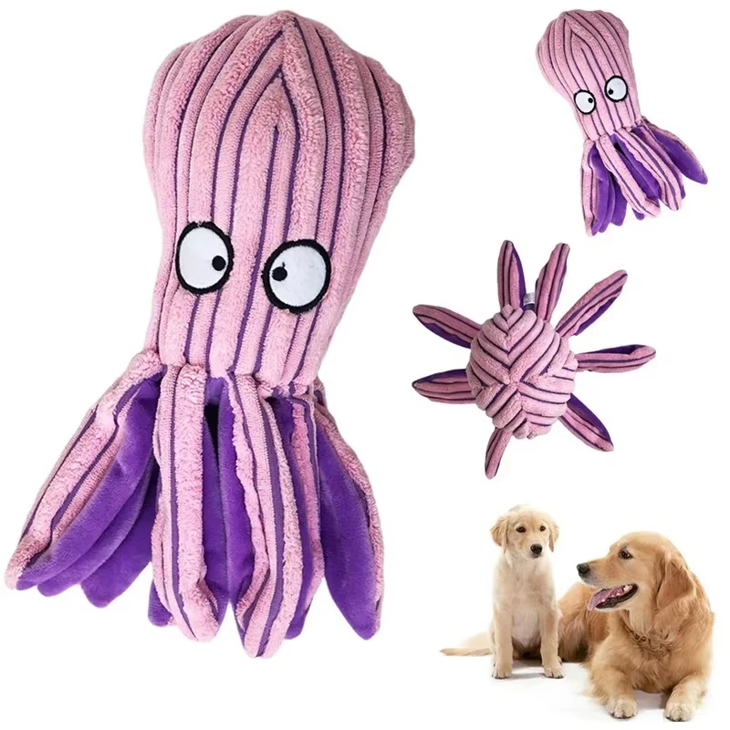 [Juguete de perro chillón]Este gran juguete para perros tiene un chirrido en la cabeza, que puede mantener el tiempo de juego cuando el perro mastica, y el pulpo de peluche para perros tiene ojos realistas, que puede despertar el deseo del perro de atacar, reducir la soledad del perro, reducir la frecuencia de sus mordeduras y ladridos y liberar las emociones del perro.