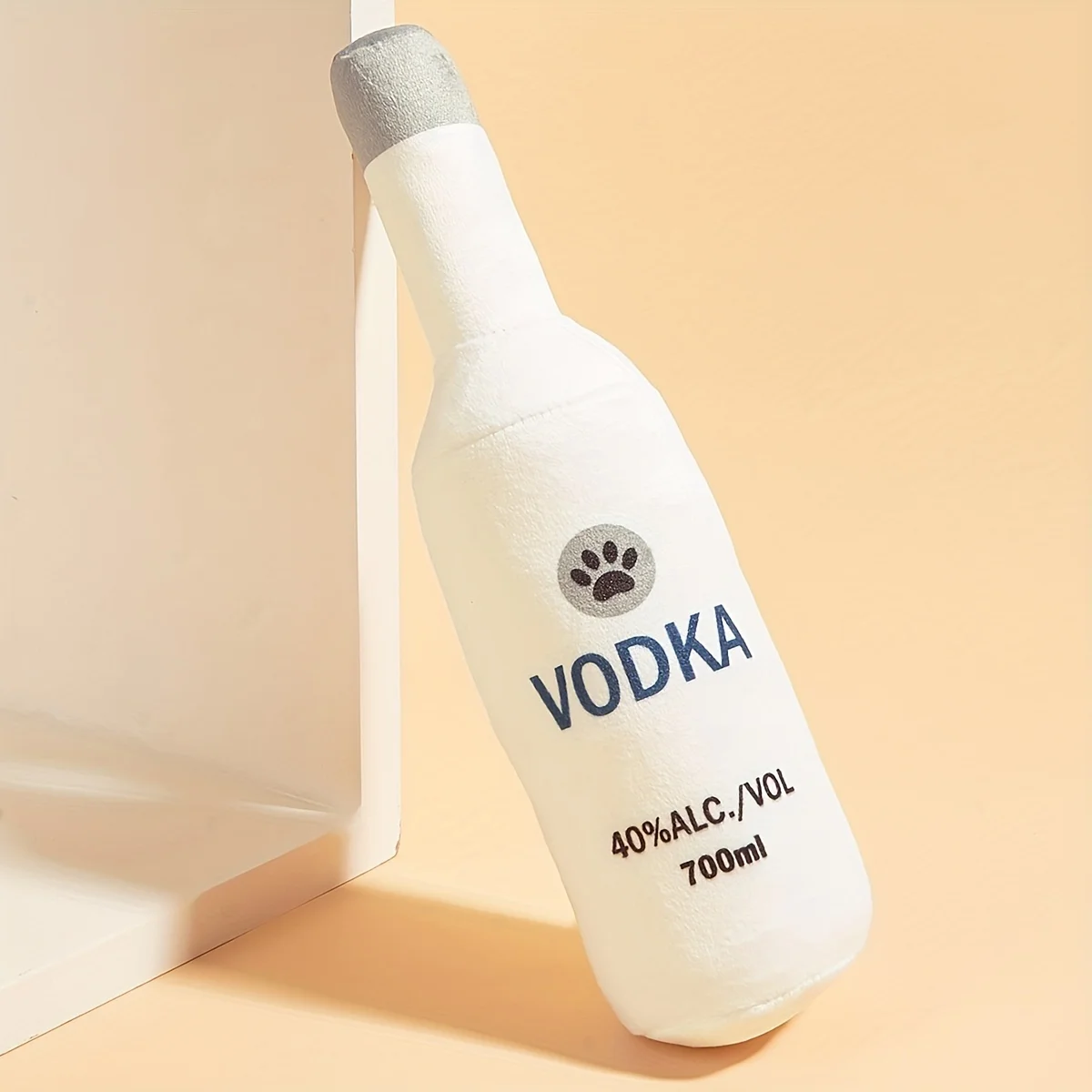 Juguete masticable para perros con forma de botella de vino relleno de felpa, masticación ligera para perros pequeños y medianos, seguro y divertido.Quitar cosas se esconden en sus juguetes de peluche con forma de botella.Tu perro corrará por la casa, se acostará junto a él, lo sacudirá y lo chirriará.Gran juguete, también chirría.