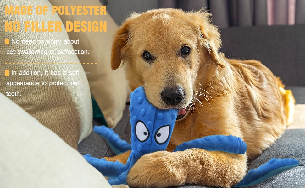 Ningún juguete de relleno dura más porque los perros están menos tentados por matar un juguete que no tenga relleno para desencadenar su instinto de caza, lo que hace que estos juguetes sean más duraderos para que los perros masticen y jueguen duros.
