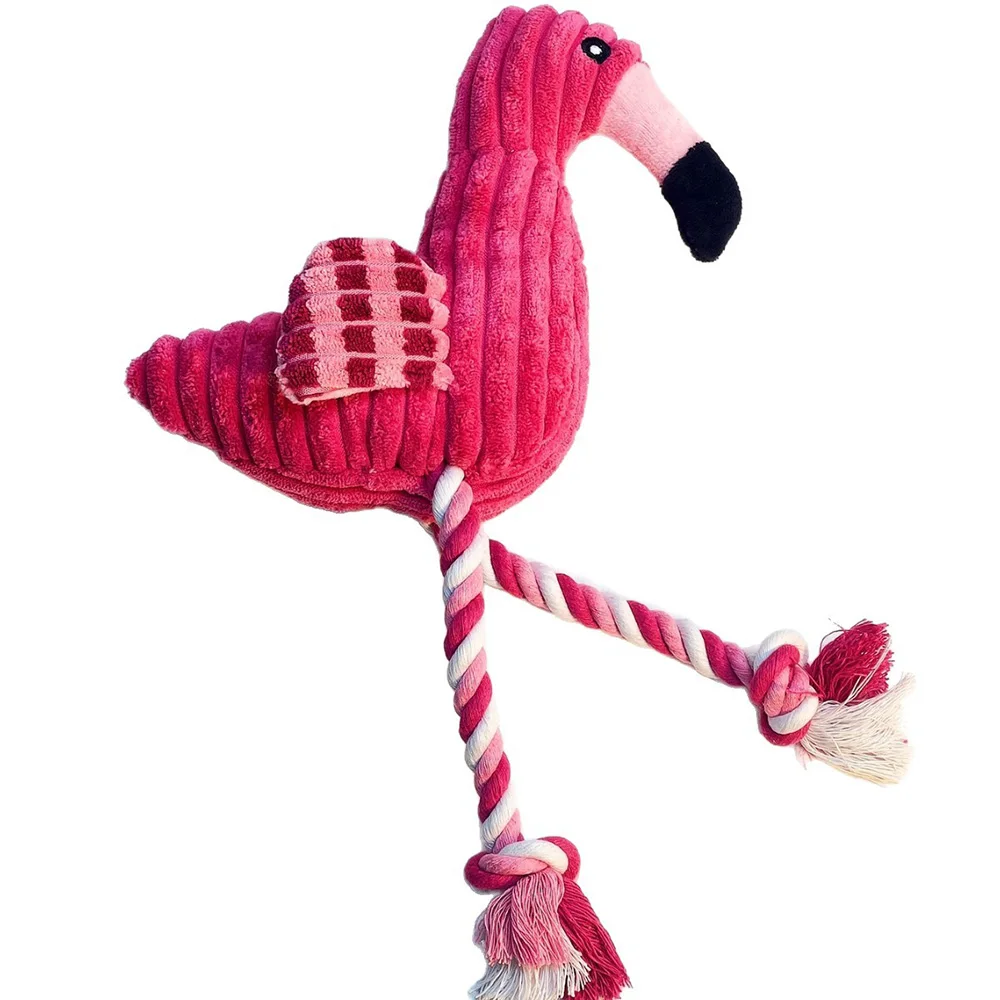Juguete de peluche para perros: forma de flamenco con chirriador y nudo de cuerda, juguete para masticar de pana duradero para moler los dientes