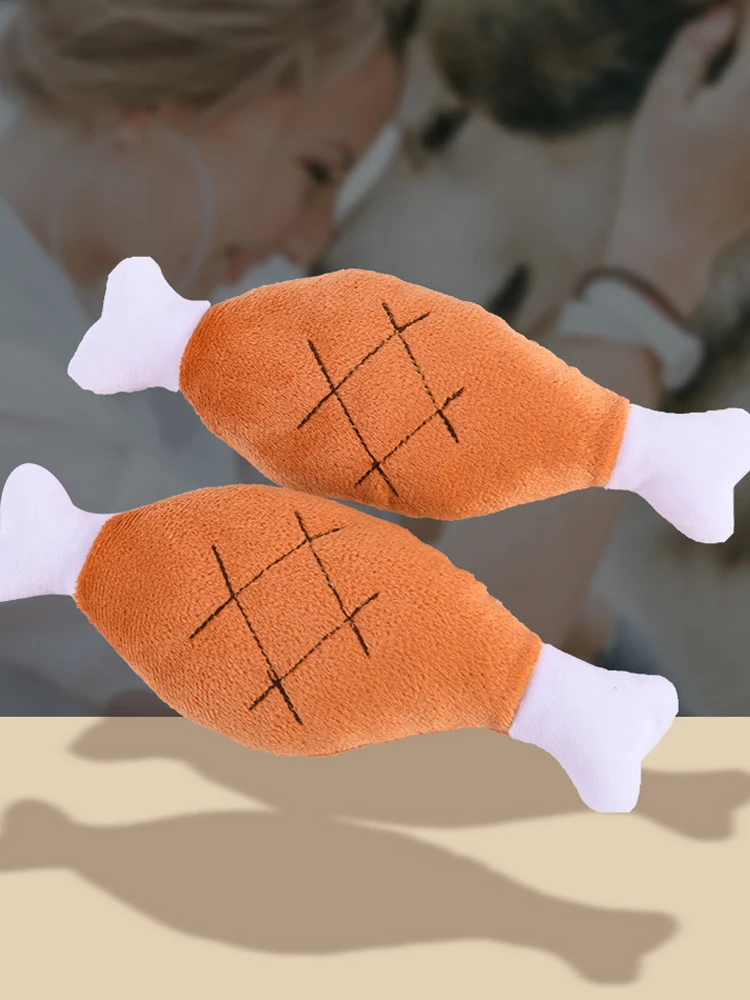 Juguete de peluche de pierna de pollo de doble hueso, mordida suave y duradera, suministros de entrenamiento interactivo para mascotas, juguetes para morder perros y gatos