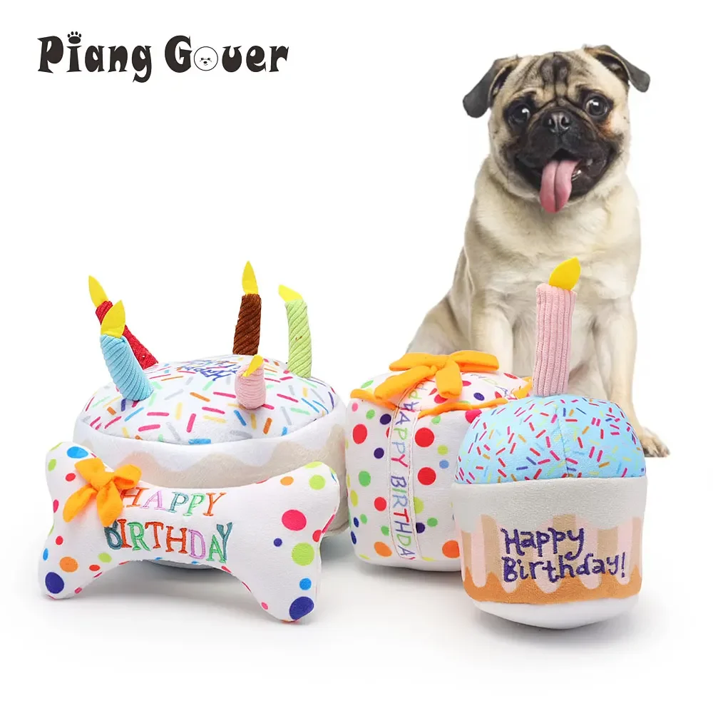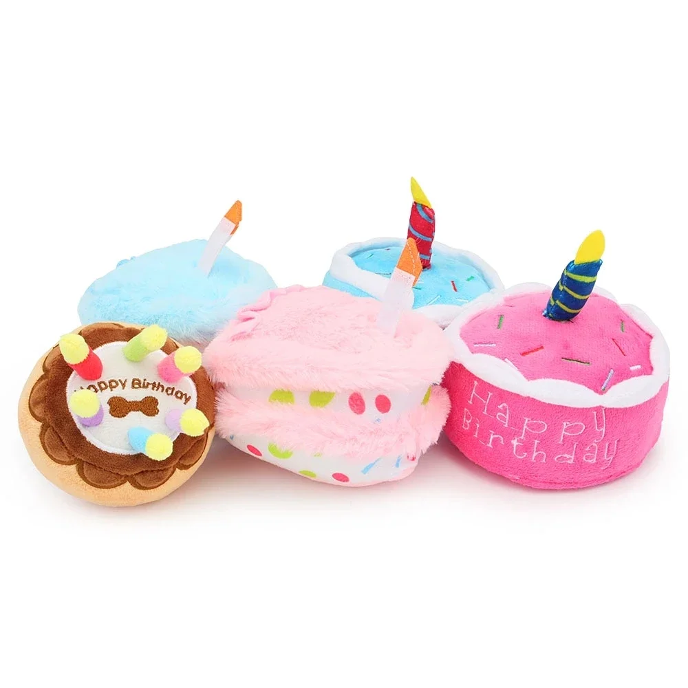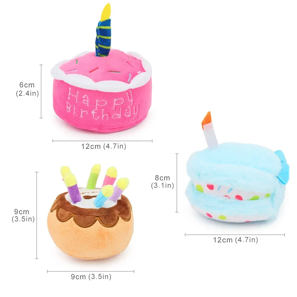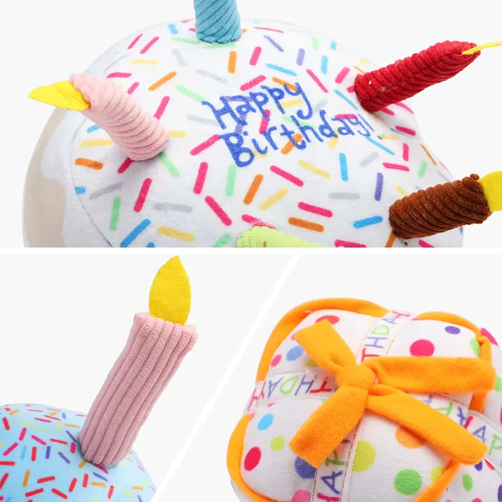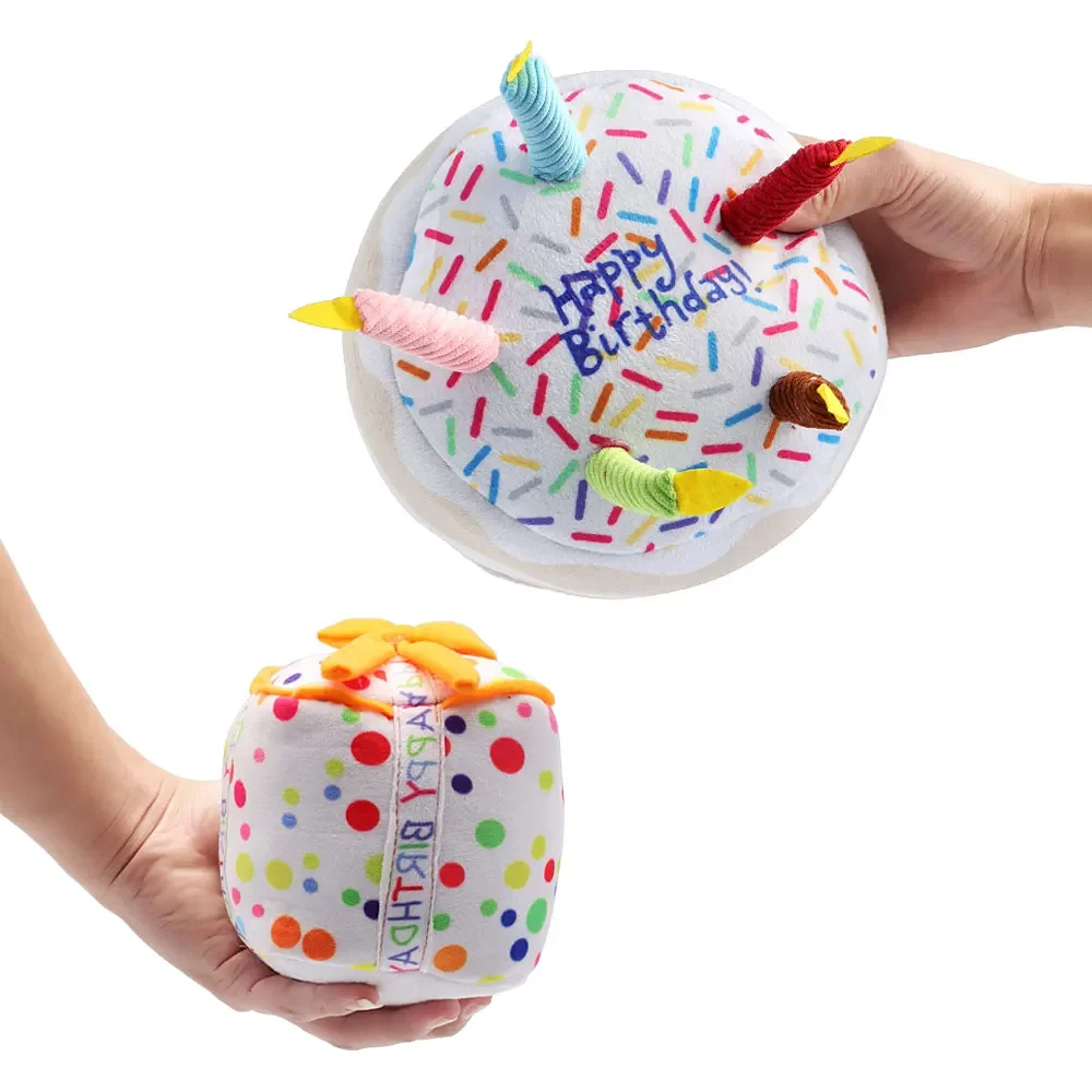 Juguete para perro con pastel de cumpleaños, juguete para masticar de felpa chirriante con velas para regalo de cumpleaños para cachorro, juguete molar resistente a mordeduras