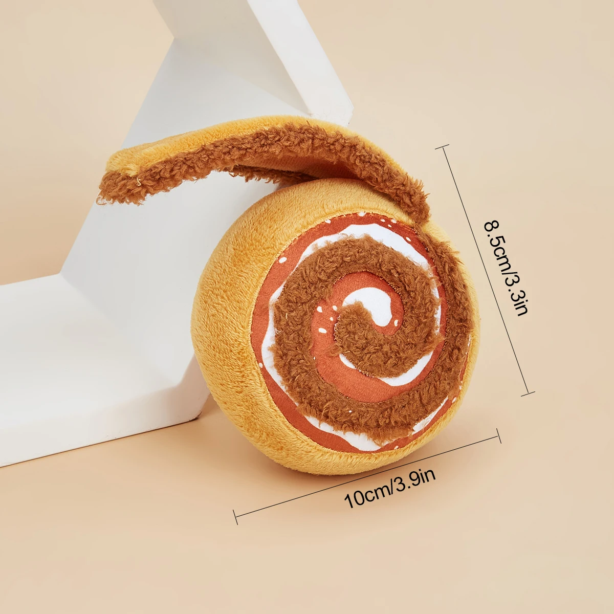 Juguete de perro de peluche chirriante para mascota, diseño de rollo de canela, relleno suave vívido, Squishys encantadores, juguete para mascotas de colección de alimentos para apretar