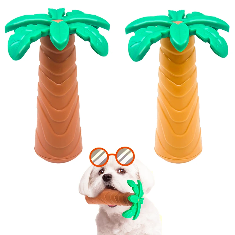 Juguete para perros, árbol de coco de goma para limpieza y moler los dientes, estilo tropical, adecuado para perros grandes, medianos y pequeños