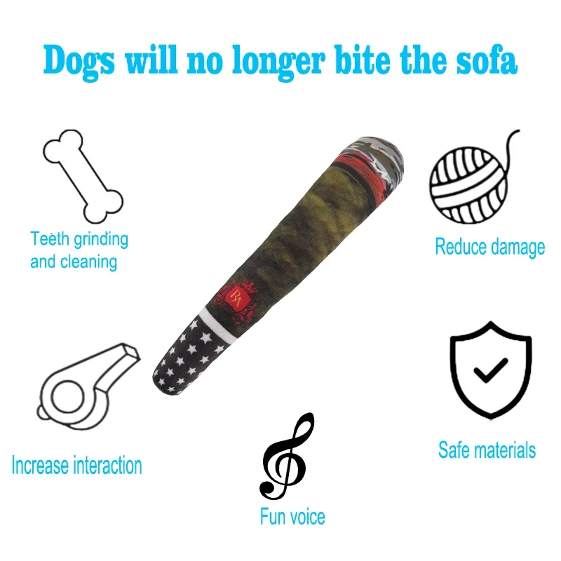¡Dale a tu amigo peludo la mejor experiencia de juego con nuestro **¡Juguete para perros Cigar chirriante**!Diseñado para parecerse a un cigarro clásico, este juguete de peluche no solo es elegante sino que también está repleto de diversión.En el interior, un chirriador incorporado crea un sonido irresistible que mantendrá a su cachorro entretenido durante horas.