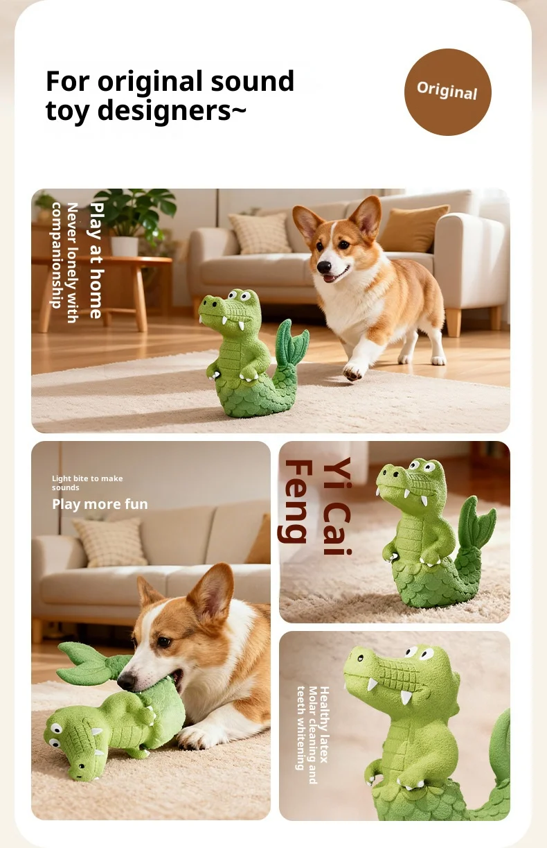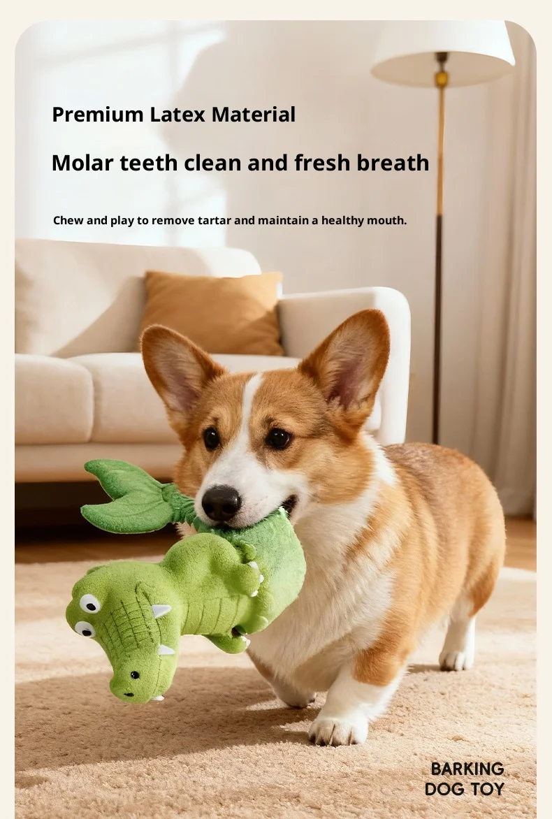 Juguete para perros de cocodrilo de dibujos animados con chirriador, juguete para masticar de látex Natural a prueba de masticar para morder perros de razas pequeñas y medianas