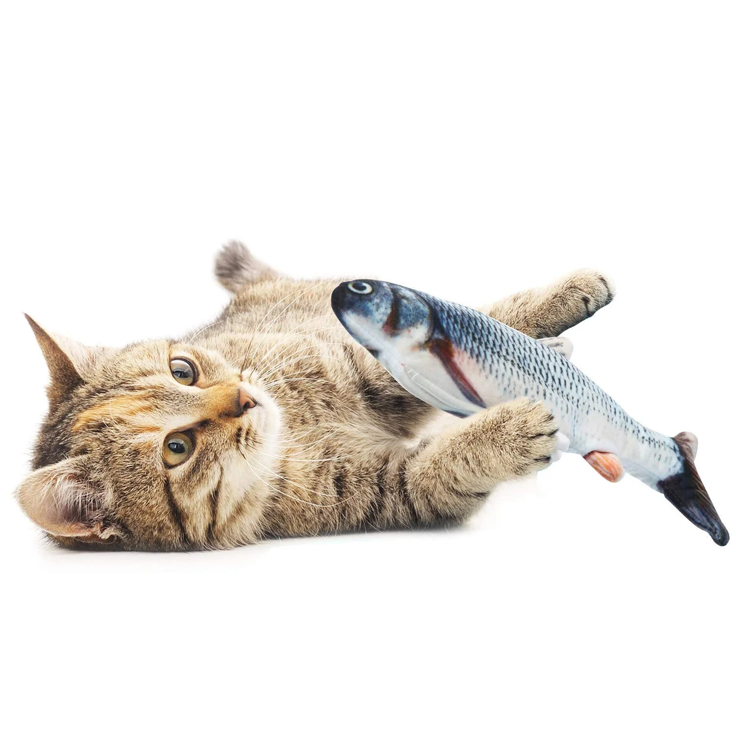 Usando el proceso de impresión 3D, diseño de forma de pez claro y realista. Sus mascotas se volverán locas con estos juguetes de hierba gatera, usted y sus gatos tendrán mucha alegría.