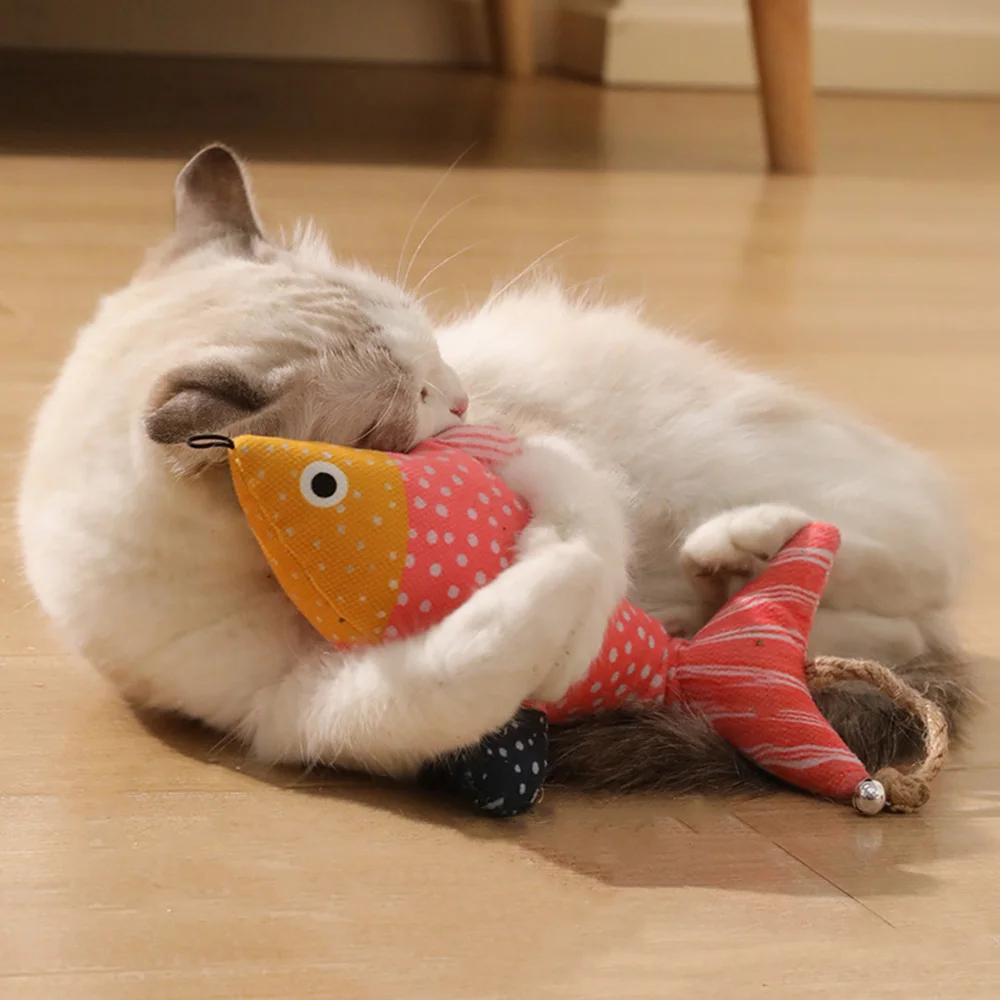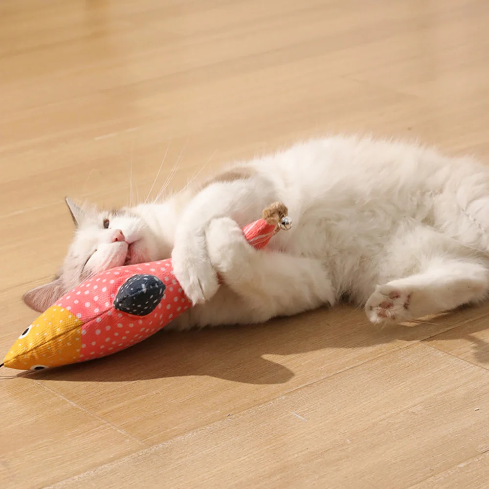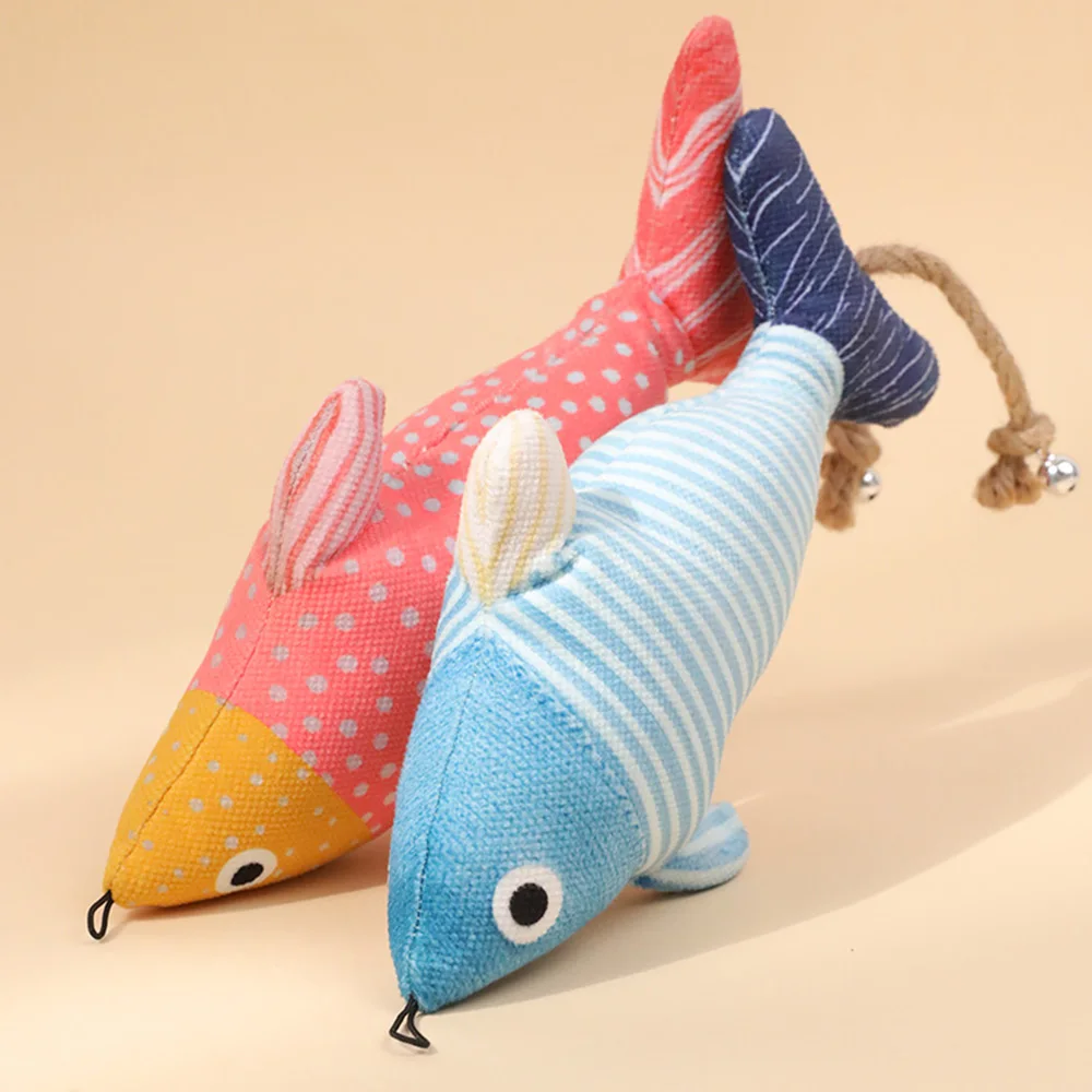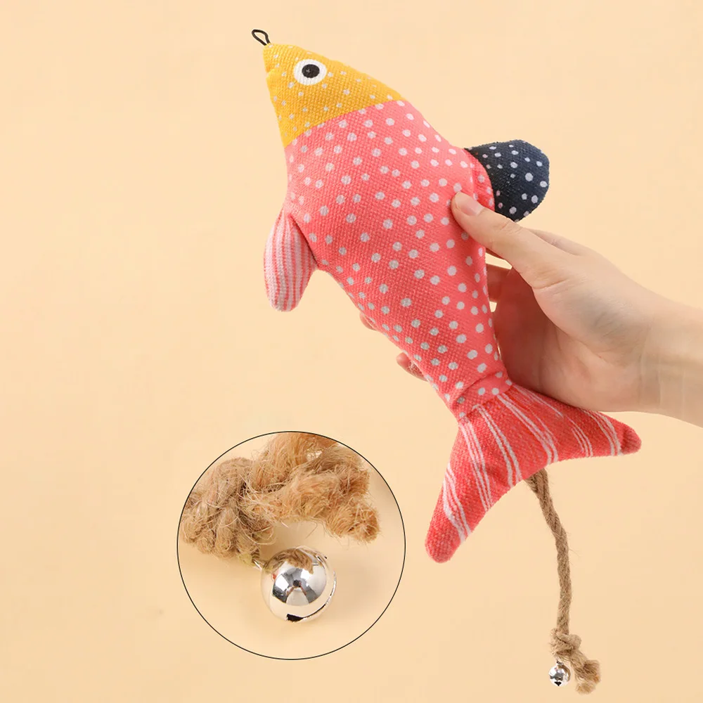 Juguete de pez con hierba gatera colgante, juguete de peluche con campana, autobuicio interactivo para juegos de aburrimiento, juguete molar para la dentición para gatos