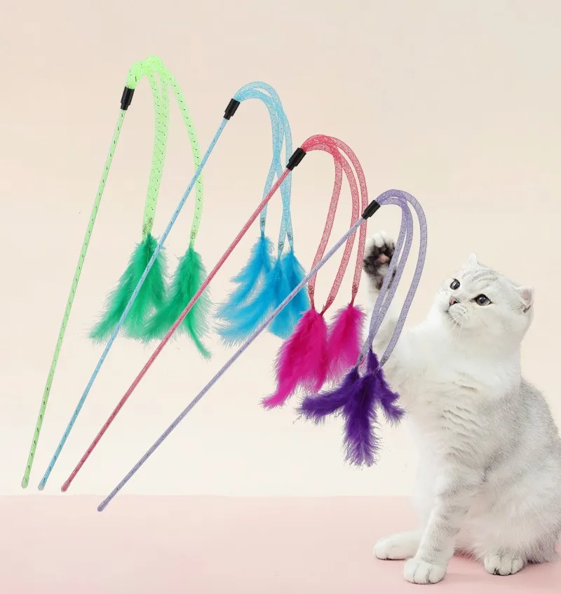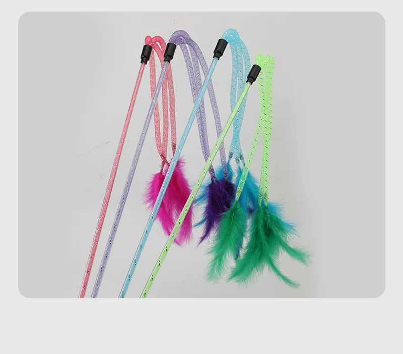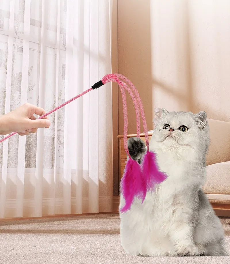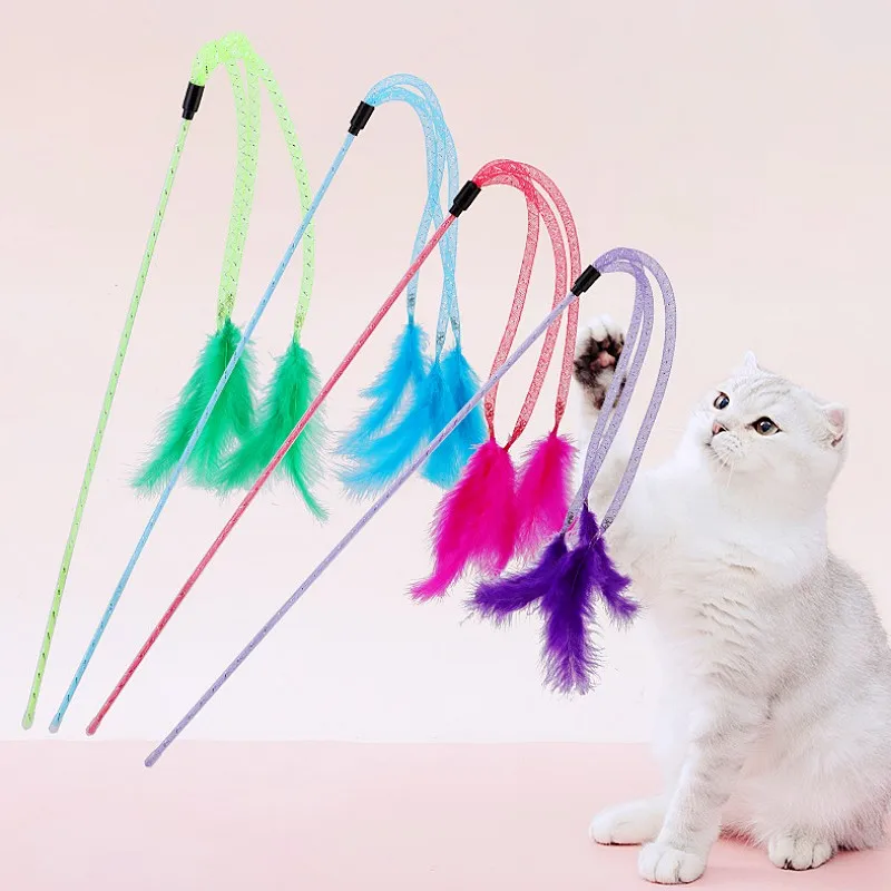 Juguete de pluma para gatos, palo con borla elástica, mango largo, interactivo con campana, productos para mascotas