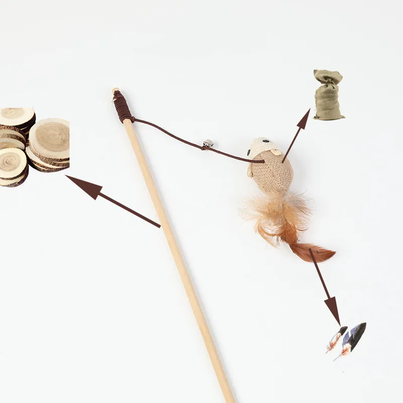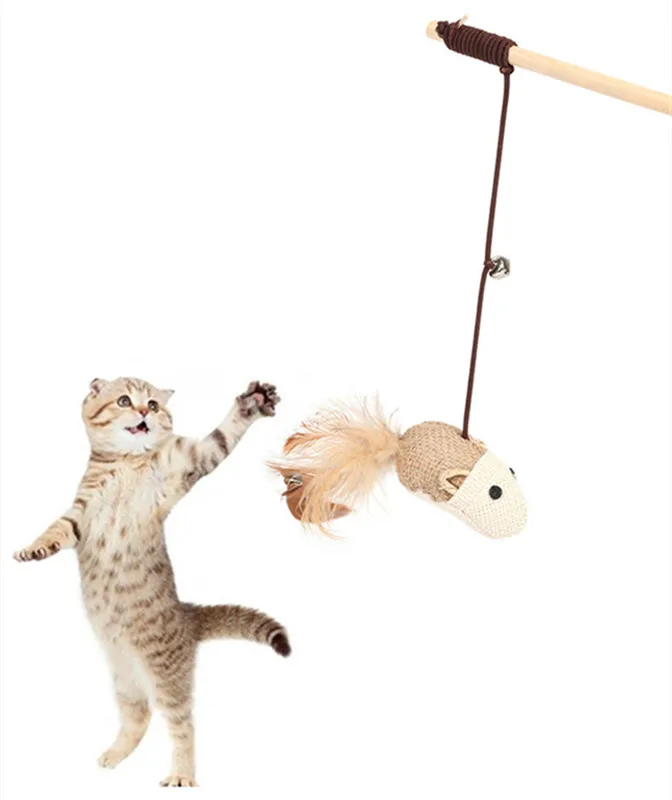 Juguetes de plumas para gatito, varita colorida divertida para gatos, juguetes de madera para gatos, palo interactivo, suministros para gatos y mascotas