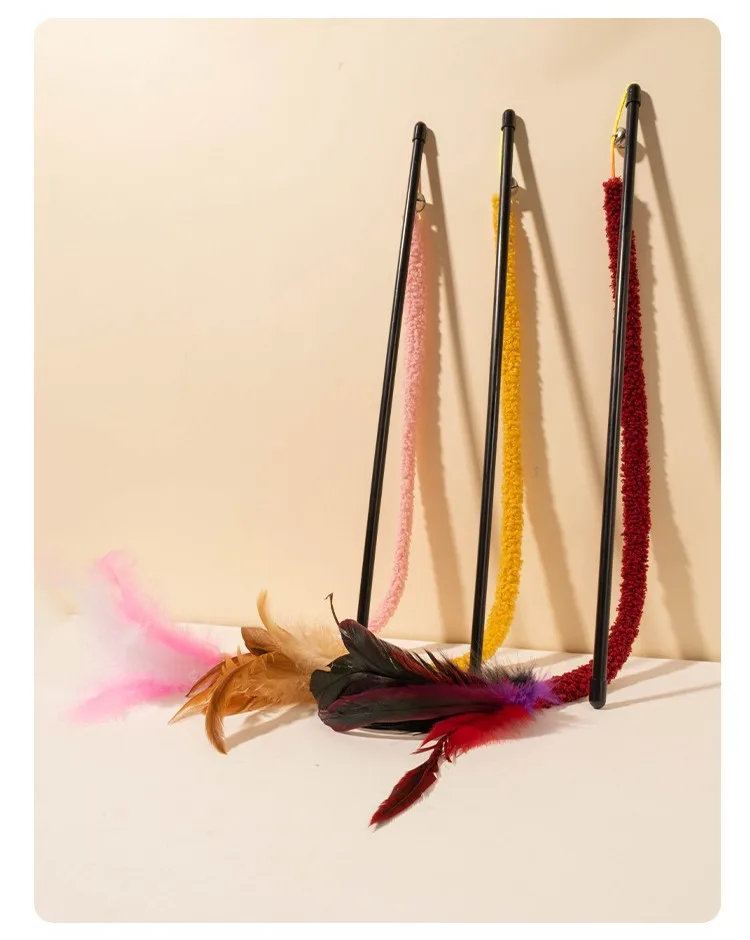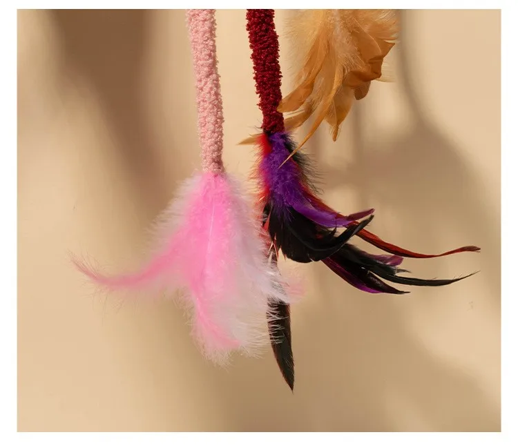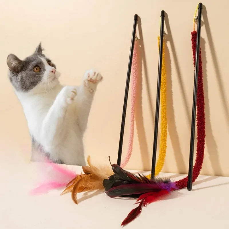 Juguete de plumas para gatos, palo de felpa a rayas, resistente a las mordeduras, palos con campana, productos para mascotas