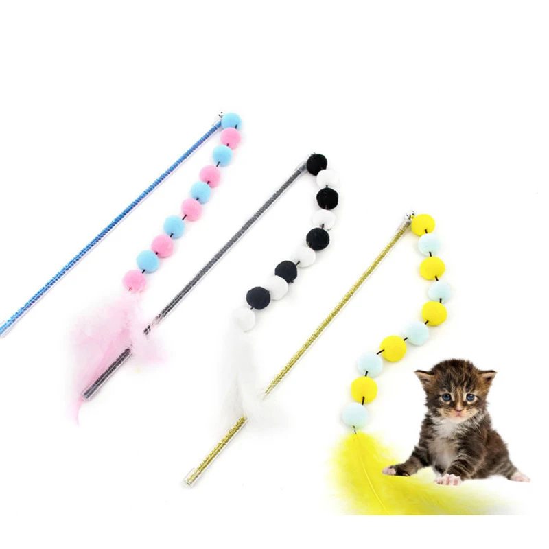 Juguete con pompón para gatos, juguetes interactivos de plumas para gatos, juguetes duraderos para gatos, palo de juego, pelota de felpa, suministros para mascotas