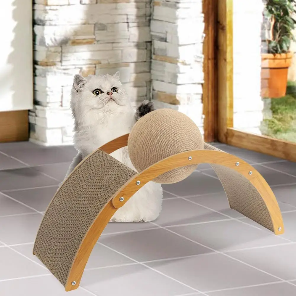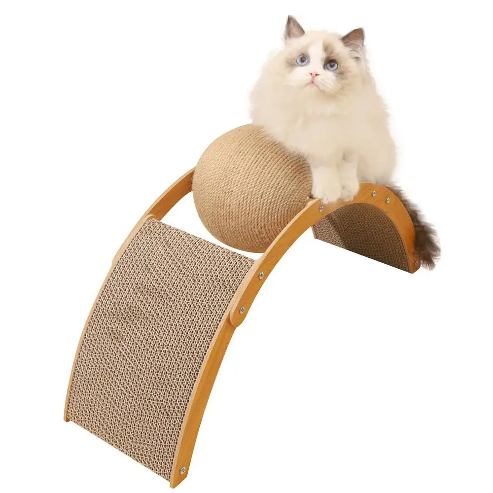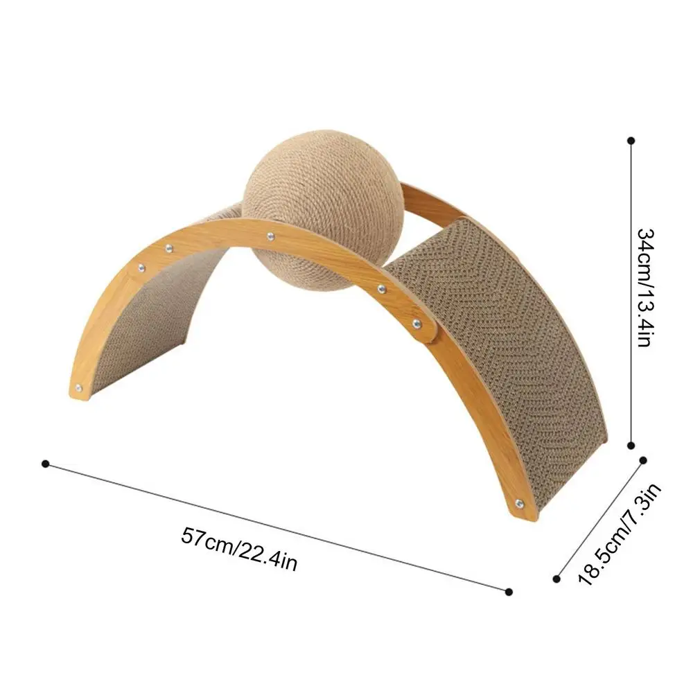 1. Diseño estable: se fija con tornillos, esta tabla para rascar gatos no se vuelca fácilmente, mejorando la estabilidad y durabilidad del producto. El diseño del puente arqueado también proporciona un lugar cómodo para que su gato descanse y juegue.