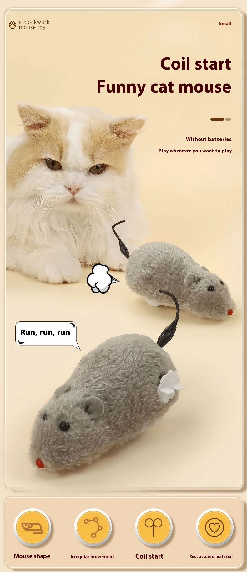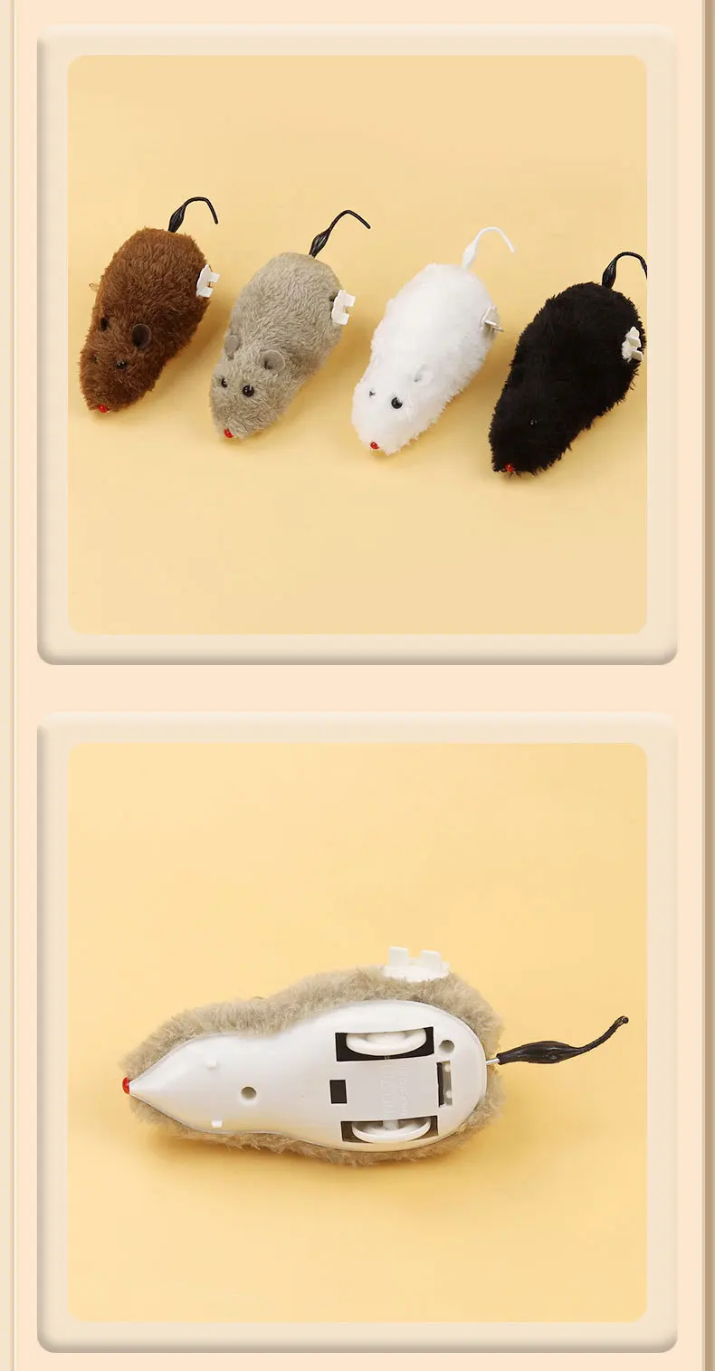 Juguete de ratón de cuerda de felpa divertido e interactivo para gatos, perros y niños, juguete de animales en movimiento mecánico para jugar y bromas