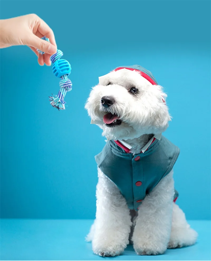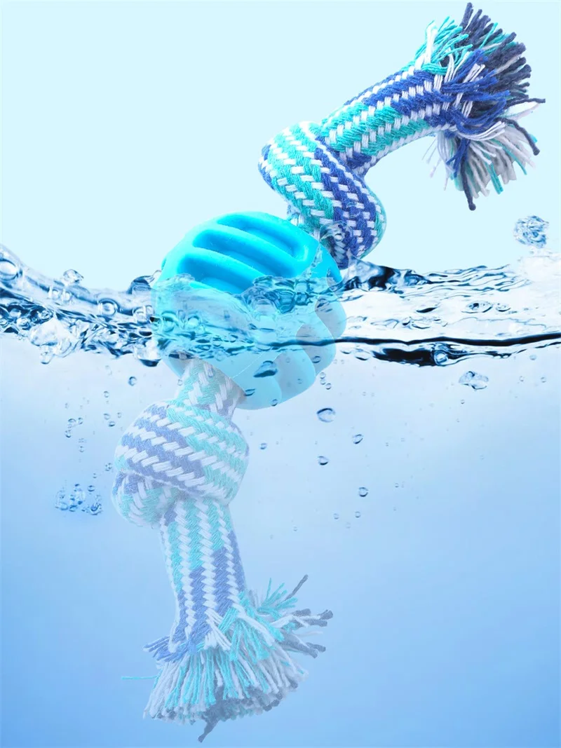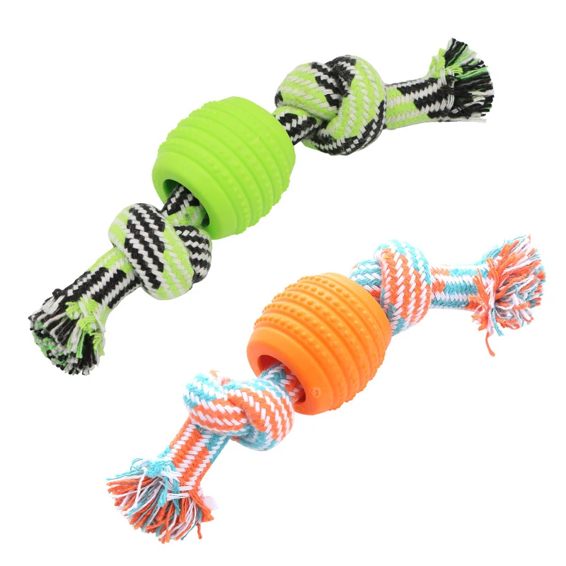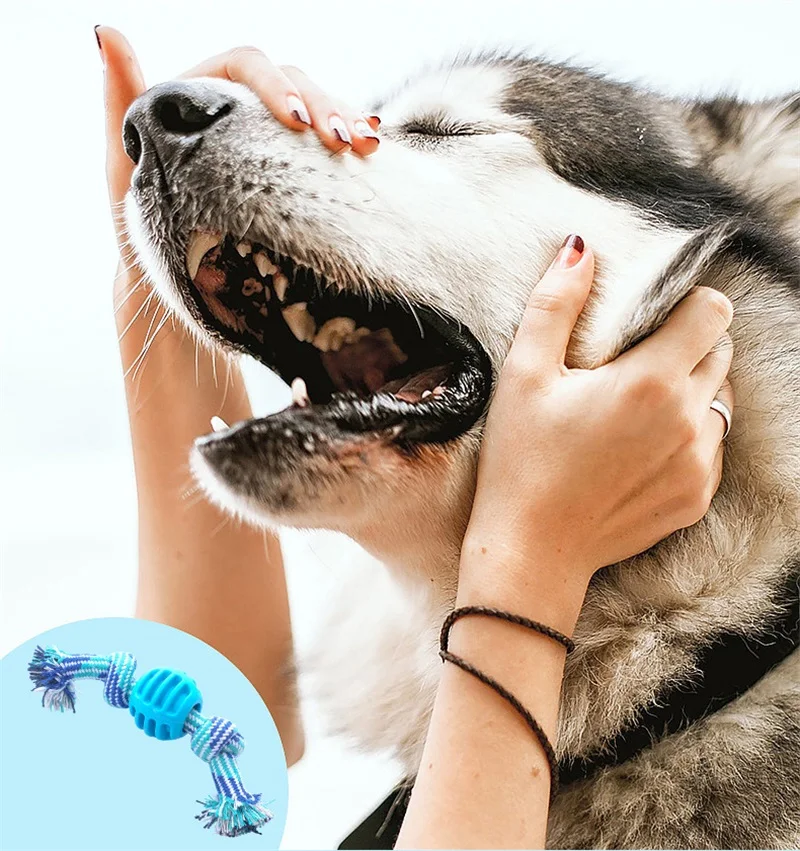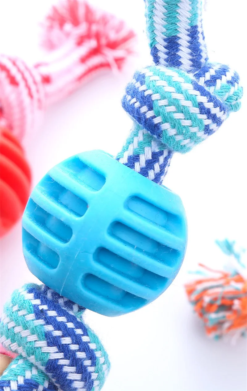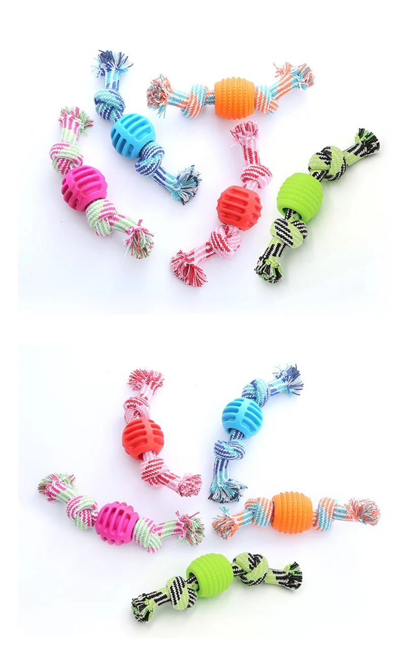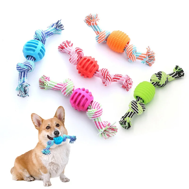 Juguete resistente a las mordeduras para perro, cuerda de algodón con doble nudo, Bola de TPR, regalo para masticar, herramienta de limpieza de dientes para cachorro, suministros para mascotas