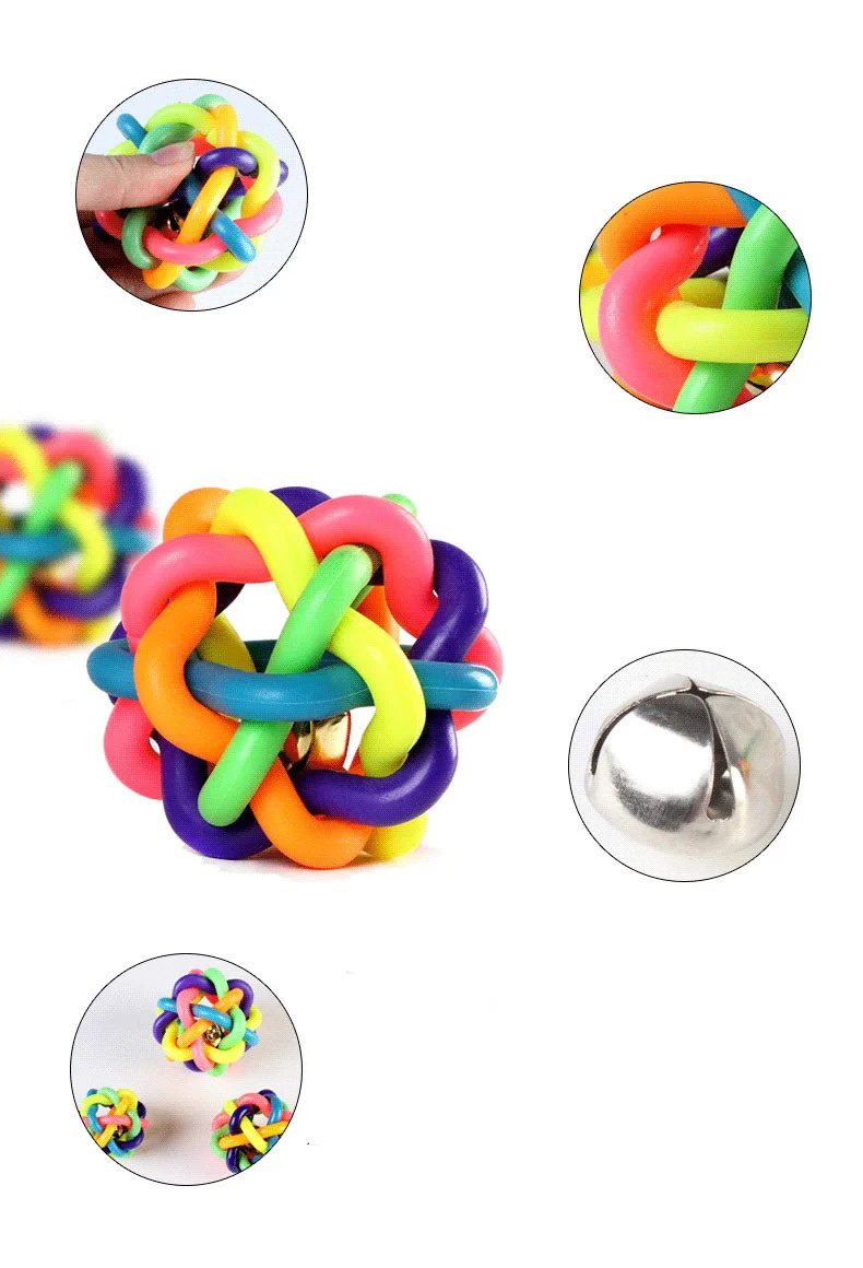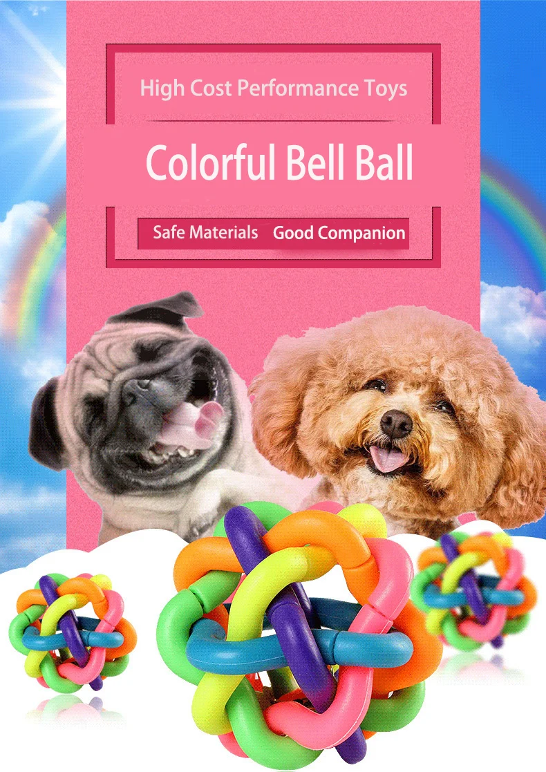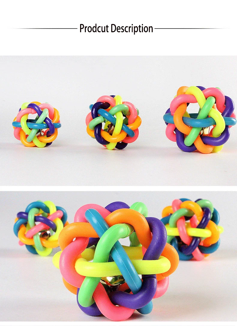 Juguete tejido de campana de colores, juguete Popular resistente a mordeduras de perro, juguete de goma para masticar mascotas, productos de bolas bonitas