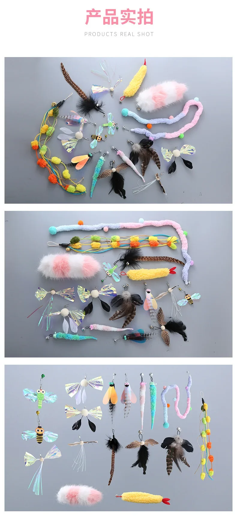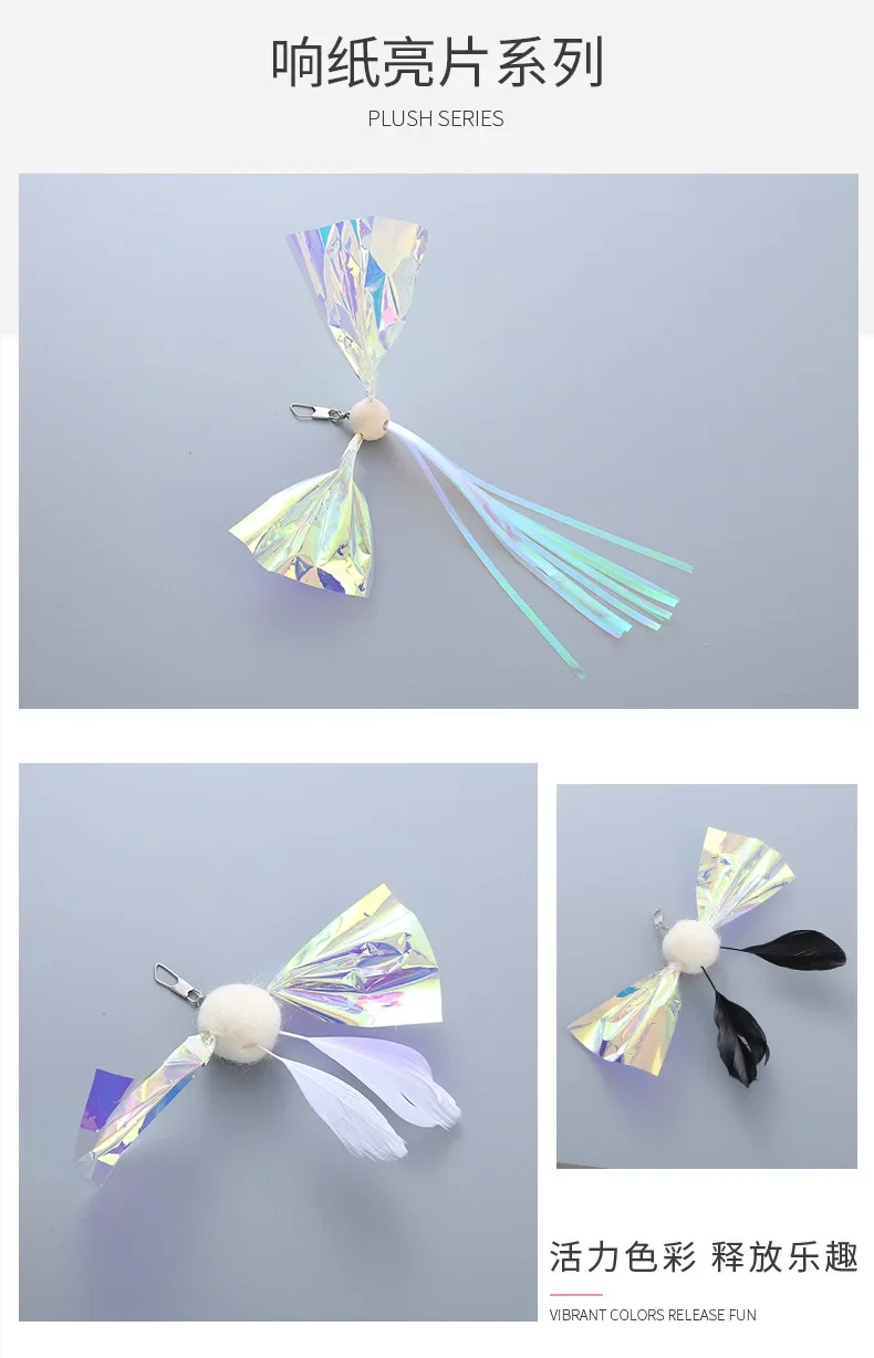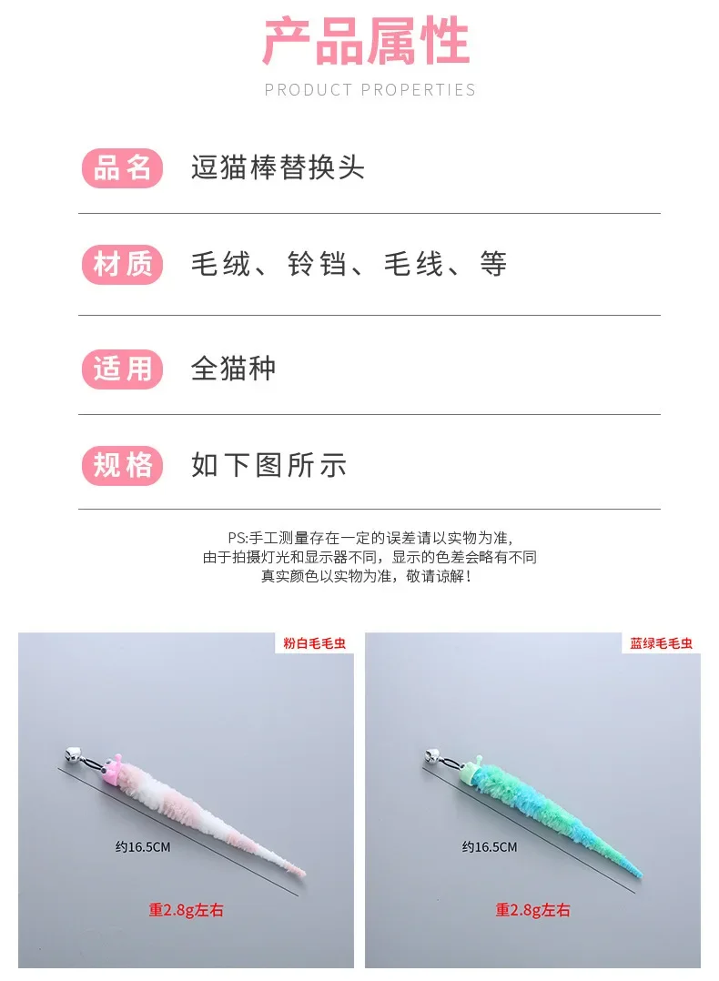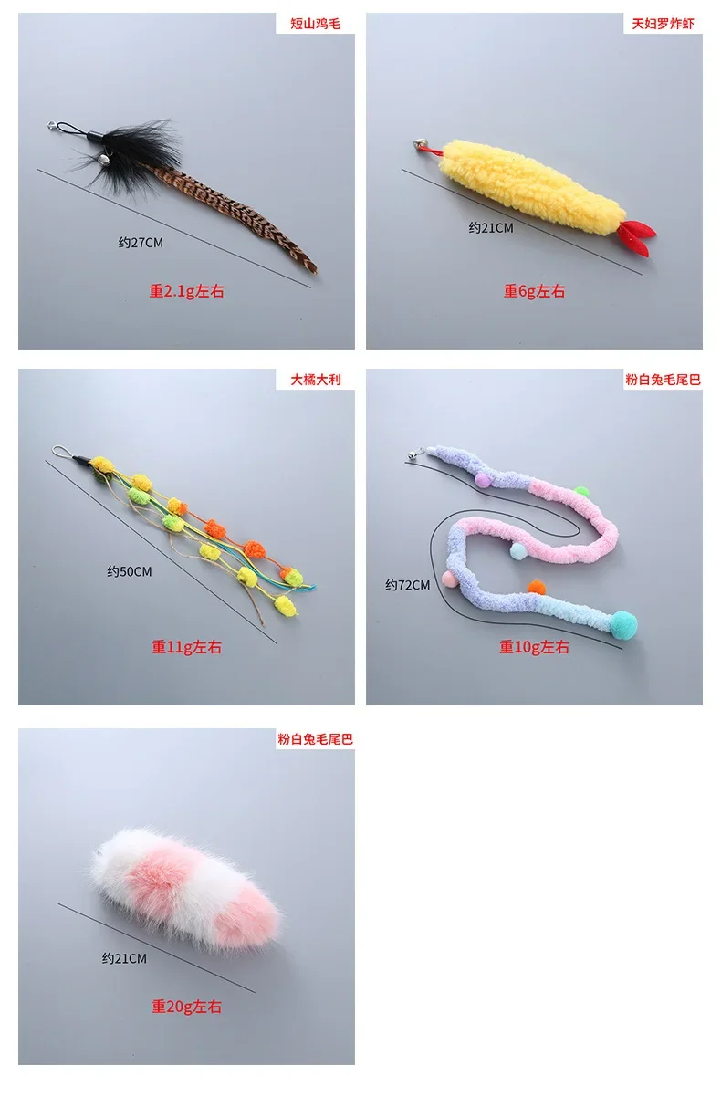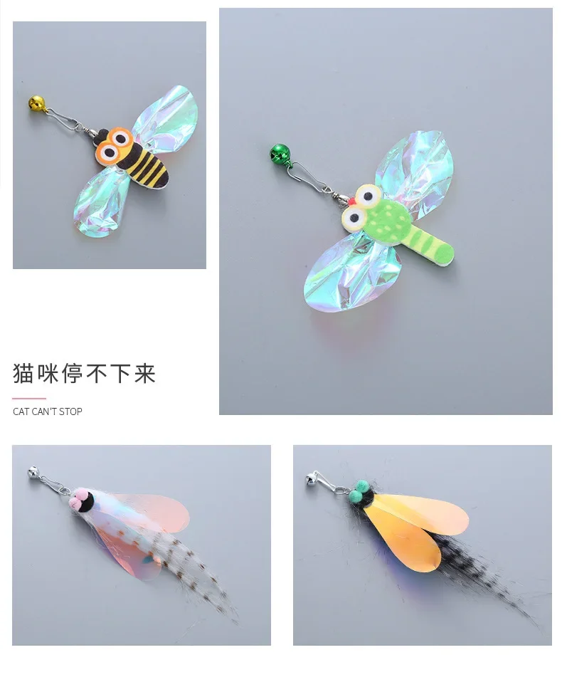 Juguete telescópico de cabeza de repuesto para gato, pluma de felpa, Teaser, reemplazar la cabeza, insecto, suministros para mascotas