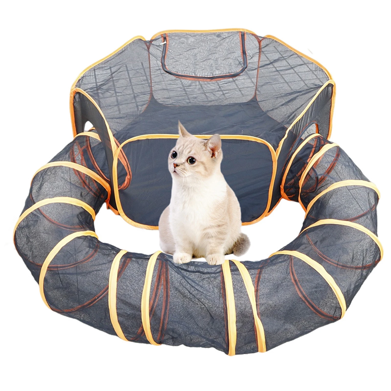 Túnel 2 en 1: este túnel plegable para gatos es una combinación perfecta de túnel para gatos y tienda de campaña hexagonal, creativa e interesante.