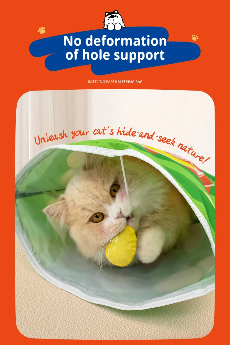 Juguete de túnel para gatos con 7 diseños de patrones Gourmet, bolsa de taladro interactiva plegable para gatos, juguete para mascotas con bola de felpa, bolsa de túnel para gatos