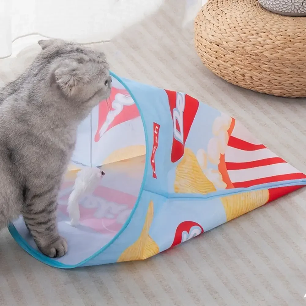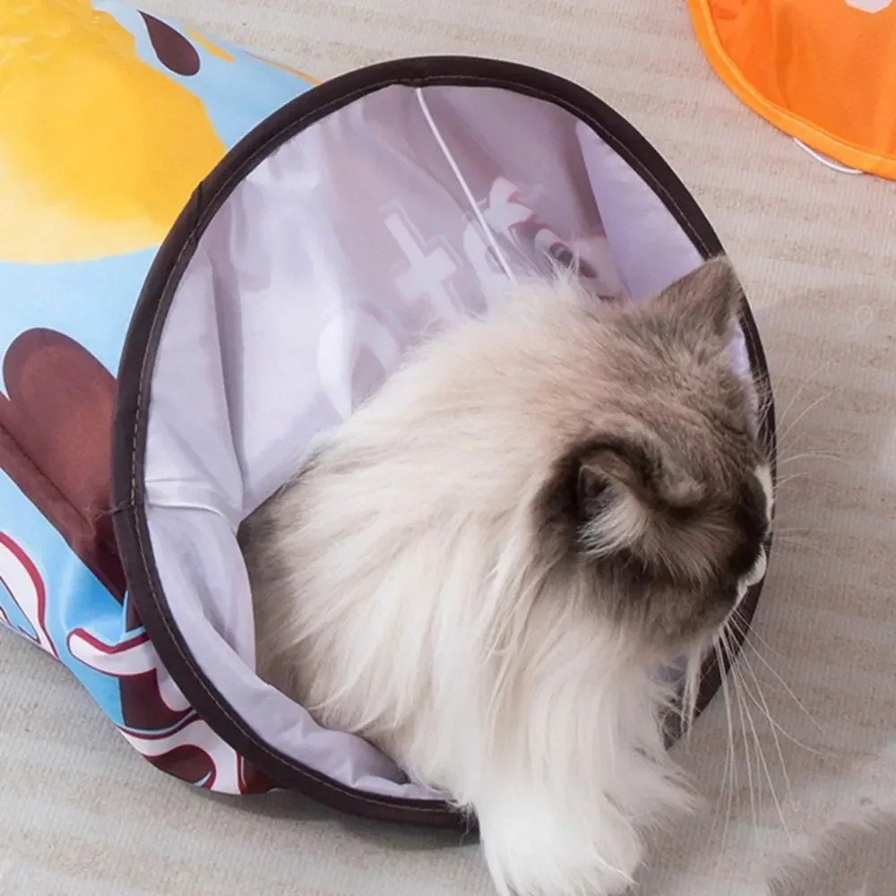 Juguete de túnel para gatos, diseños de patrones Gourmet, regalo de cumpleaños para gatos, bolsa de taladro interactiva plegable para gatos, juguete para mascotas
