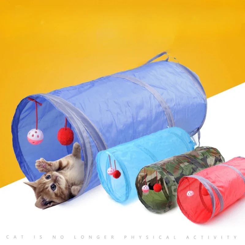 Juguete de túnel para gatos, divertido mascota, 2 agujeros, tubos de juego, bolas, juguetes plegables para gatitos, hurones para cachorros, juego de conejos, tubos de túnel para perros