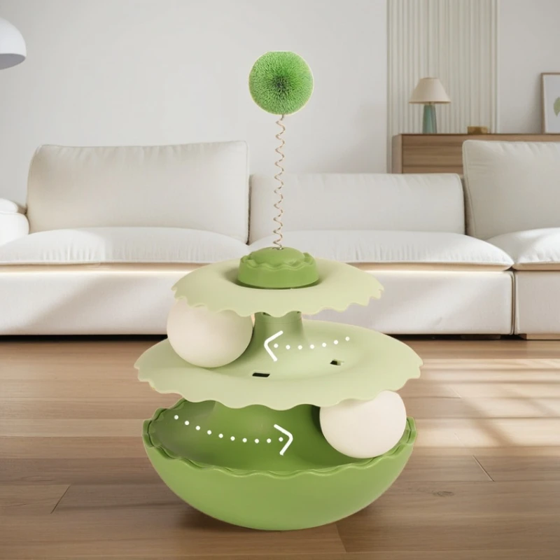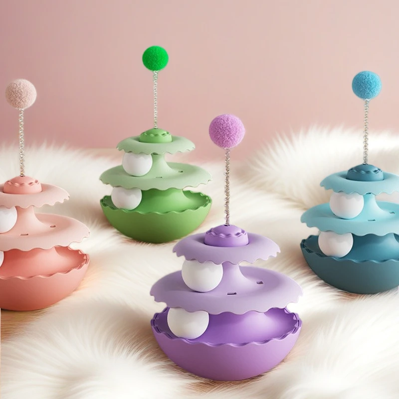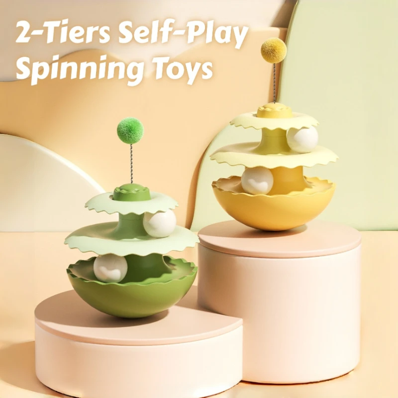 Juguete Wobbler autoadhesivo de 2 niveles para gatos: juguetes giratorios de color dopamina, rompecabezas automático para diversión en interiores y alivio del aburrimiento