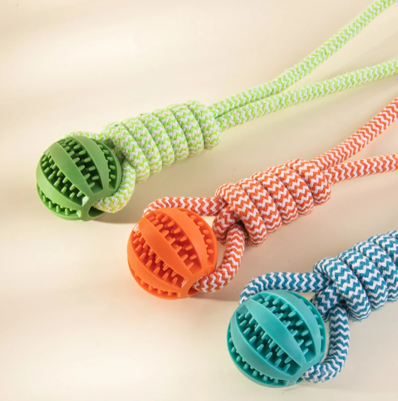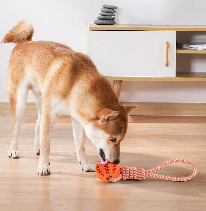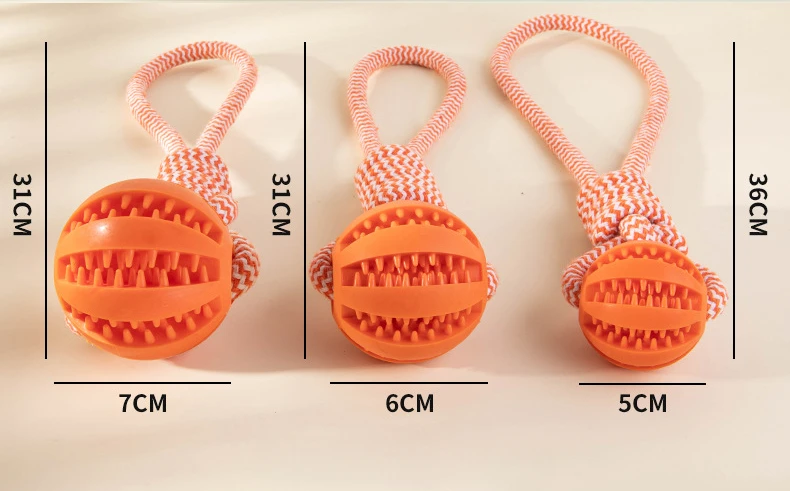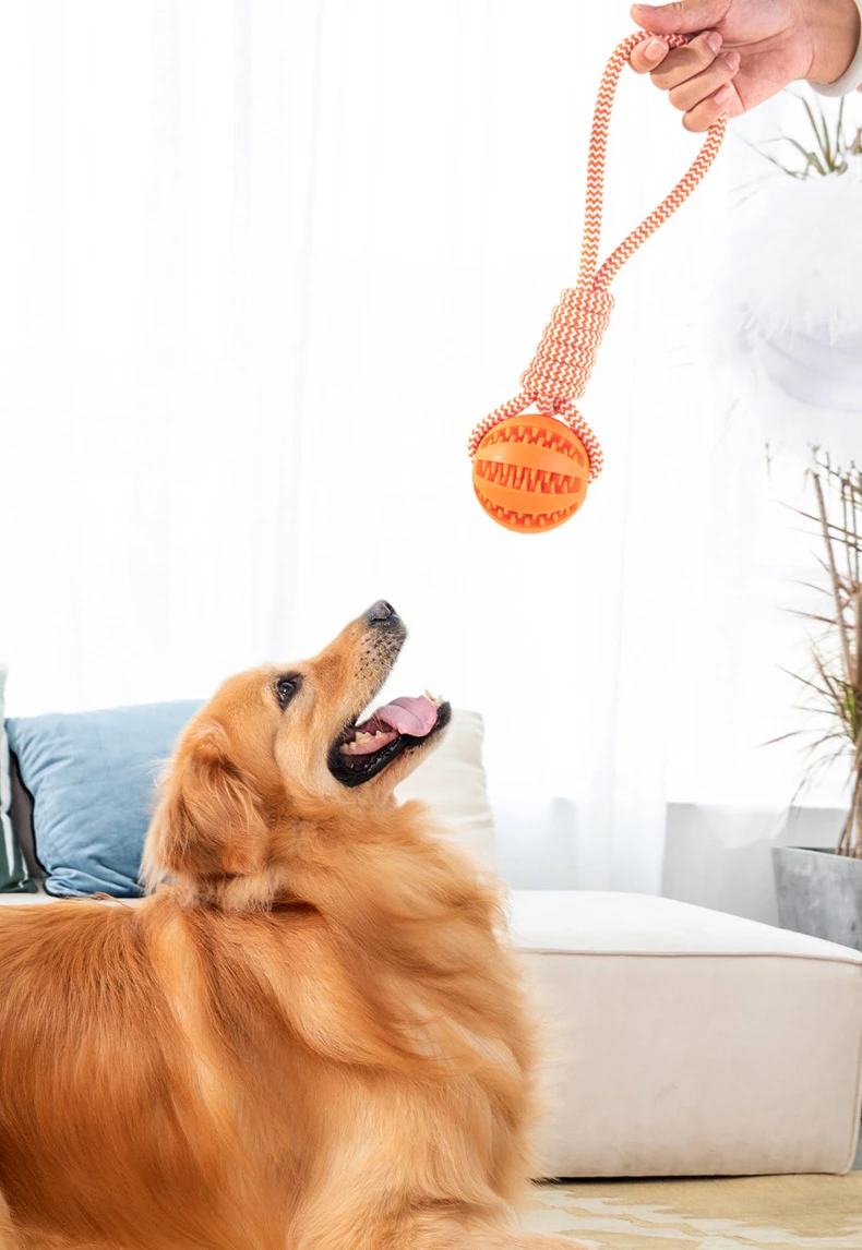 Juguetes de bolas de comida con fugas para perros con cuerda de algodón, juguete interactivo para interiores para mascotas, suministros de juego de molienda de dientes resistentes al masticable de goma para cachorros