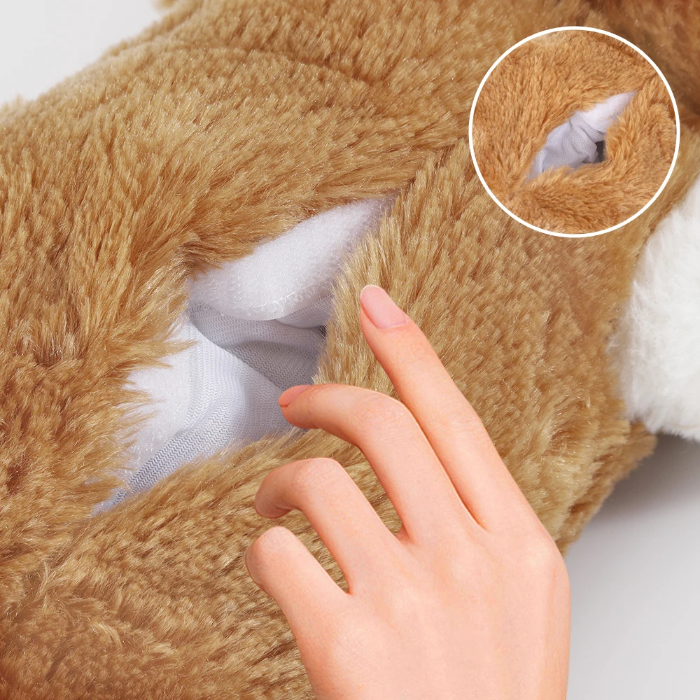 El bolsillo para el vientre está cerrado con un gancho lateral y suelto para evitar que el corazón se caiga del cuerpo. El juguete de peluche para cachorros se puede lavar a máquina después de sacar el simulador de latidos. Es simple y conveniente, ya que le permite a su perro tocar juguetes limpios y mantenerse saludable.