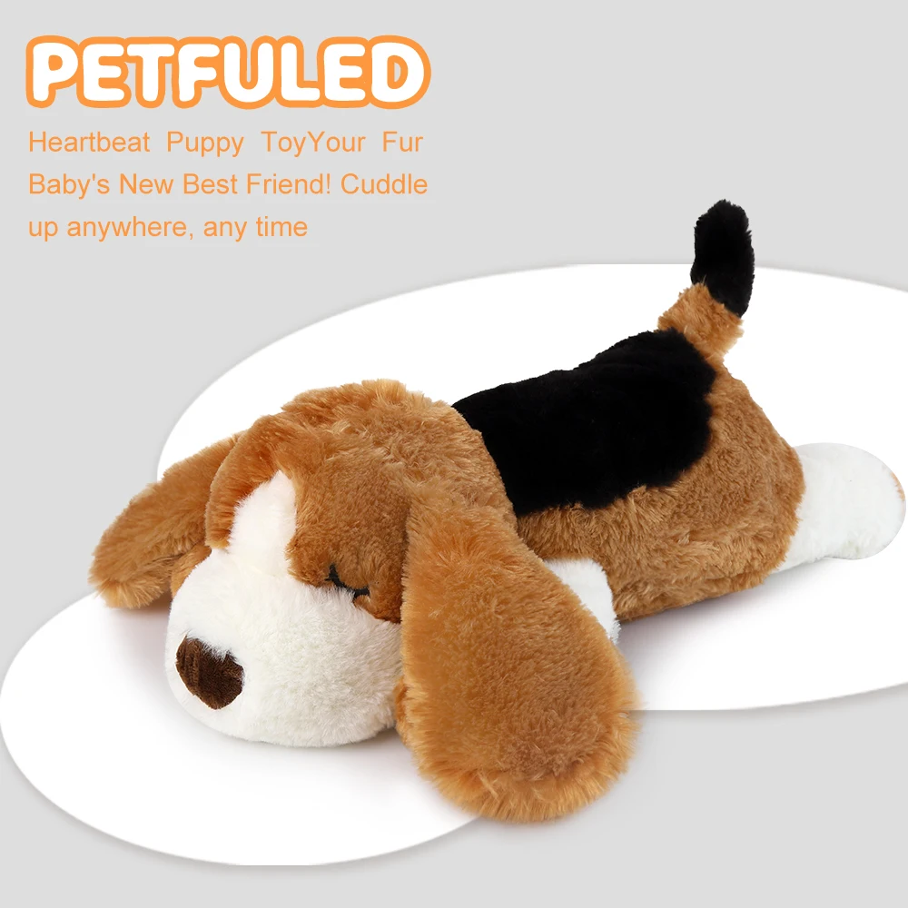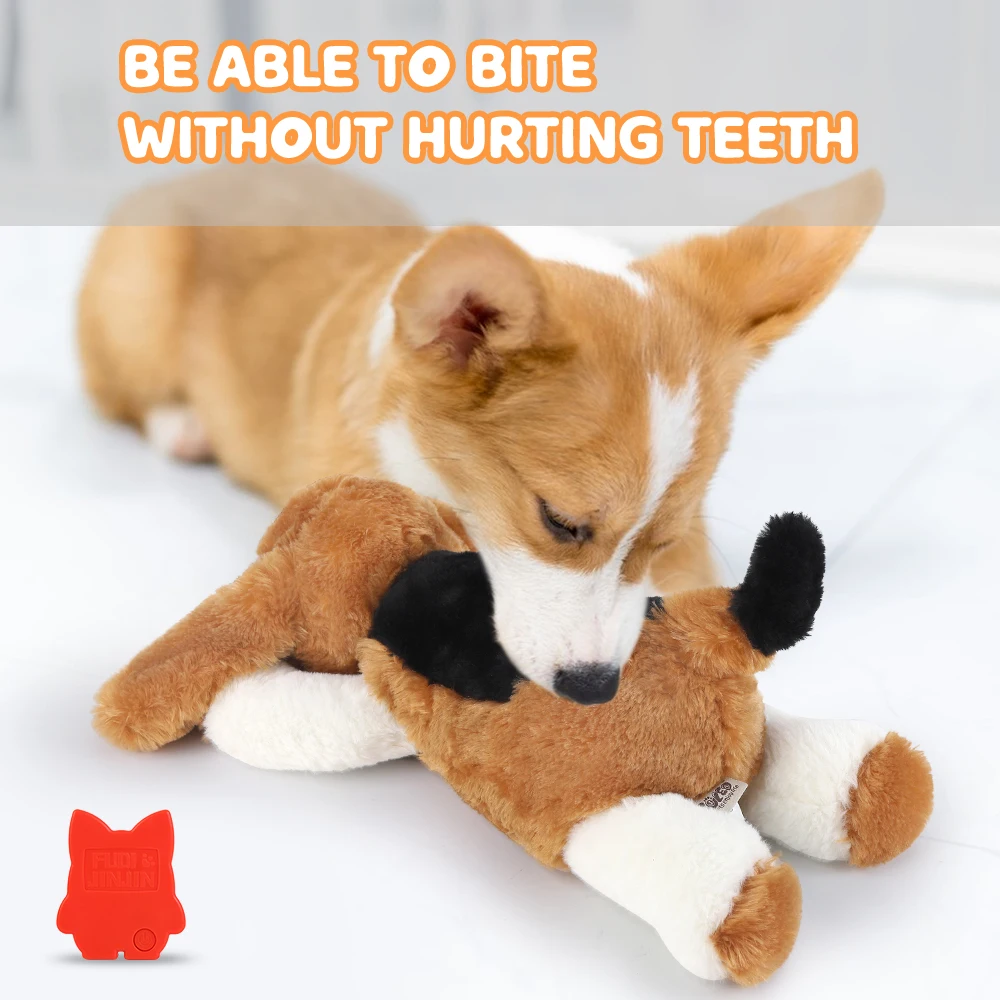 El juguete para cachorros está hecho de un material de felpa suave, cómodo y agradable para la piel.El simulador de latidos del corazón del interior es seguro para el perro.
