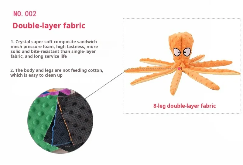 Juguetes chirriantes para perros, pulpo, sin relleno, juguetes de peluche arrugados para la dentición de cachorros, juguetes interactivos duraderos para masticar perros pequeños, M