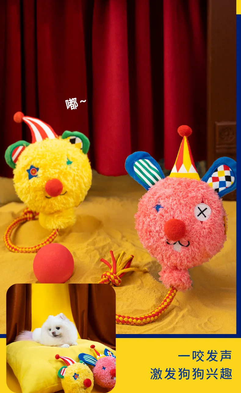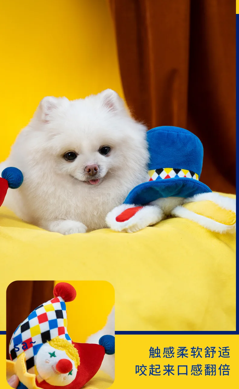 Juguetes de circo para mascotas, juguetes de sonido de perro payaso, lindo conejo resistente a las mordeduras, juguete interactivo para mascotas, accesorios para cachorros Bichon para perros pequeños